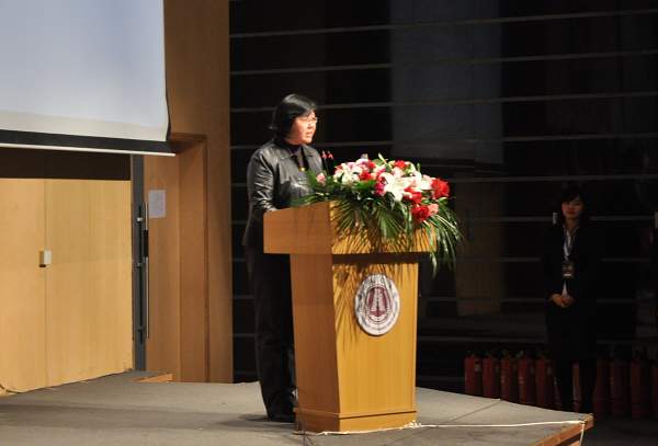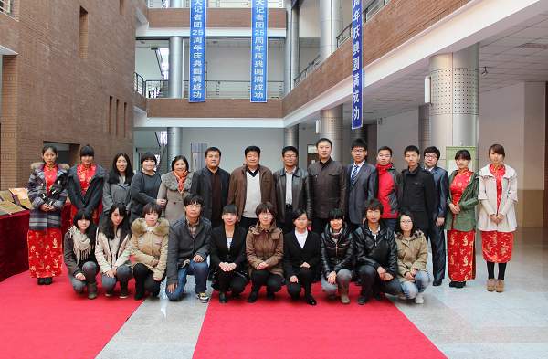 2012校纪委书记王时刚为大学生记者团25周年辉煌巡礼展剪彩