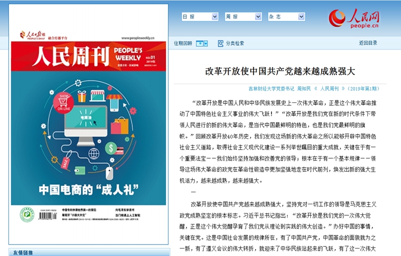 2019《人民周刊》刊发校党委书记周知民的文章:改革开放使中国共产党越来越成熟强大