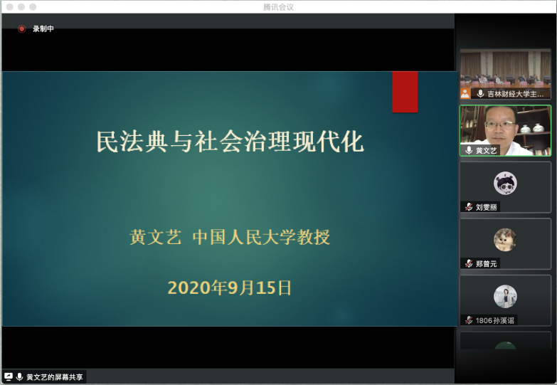 本网讯(法学院 供稿)9月15日下午,“吉林财经大讲堂”第十五讲暨黄文艺教授线上学术报告会在kaiyun官网第一会议室举行。我国著名法学家黄文艺教授作了题为“民法典与社会治理现代化”的学术报告。校党委副书记、校长孙杰光,科研处处长郭天宝,法学院院长仇晓光,法学院党委副书记高原,法学院副院长周毅、王开宇以及法学院教师、研究生、本科生近300人参加了报告会。报告会由孙杰光校长主持。黄文艺教授现任中国人民大学法学院教...