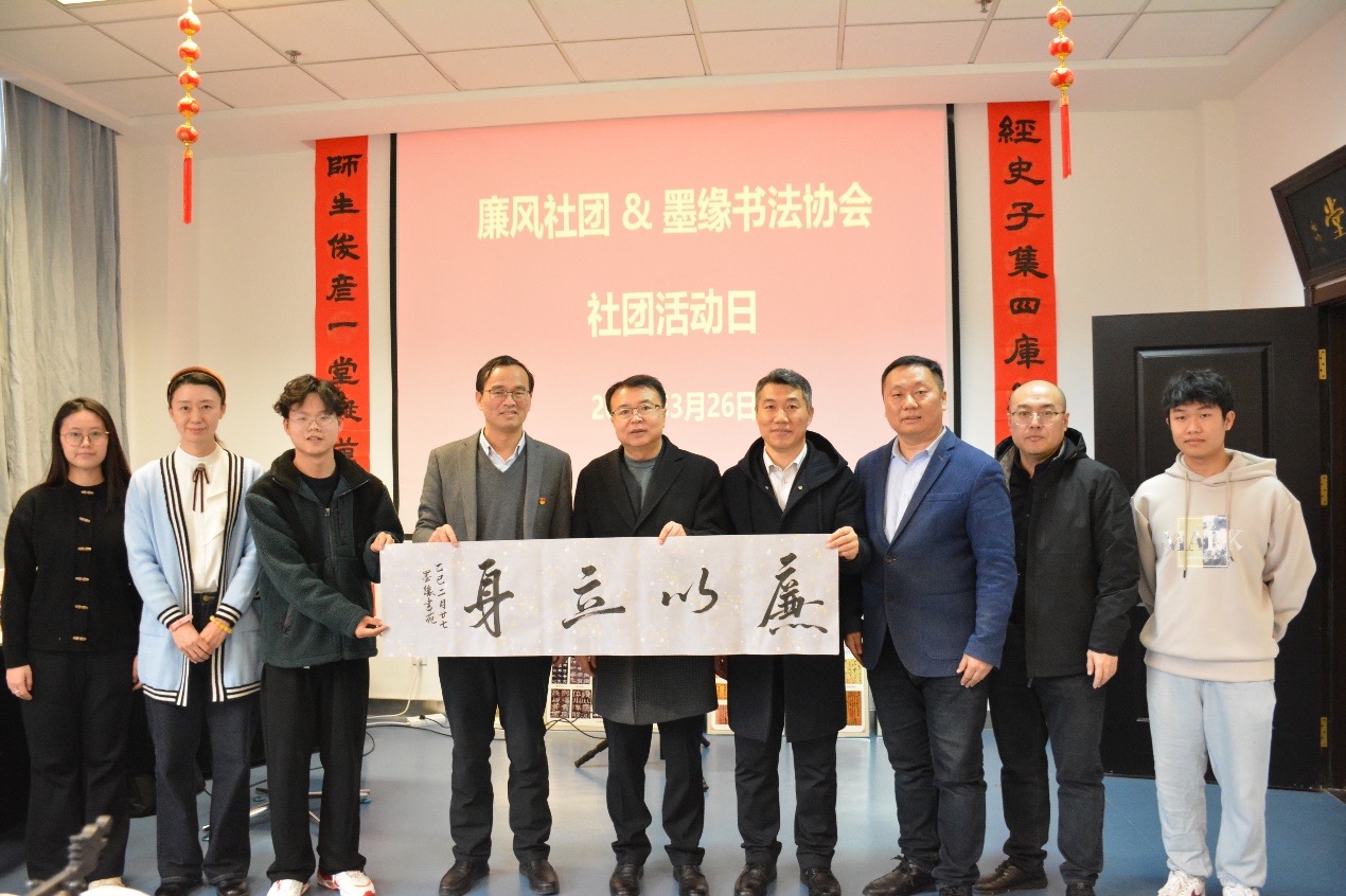 本网讯(纪检监察综合办公室 供稿)3月26日,廉风社团携手墨缘书法协会,在图书馆“墨缘书苑”举办社团风采展示活动。校纪委书记丁庆东参加活动。 丁庆东与社团成员进行了深入的互动交流,对社团在廉洁文化传播领域的积极探索给予充分肯定,并提出相关工作意见和建议。丁庆东指出,本次社团廉洁文化展示活动极大地丰富了校园文化生活,潜移默化地激发了同学们对优秀传统文化的热爱,培育了廉洁自律的意识;希望廉风社团和墨缘书...