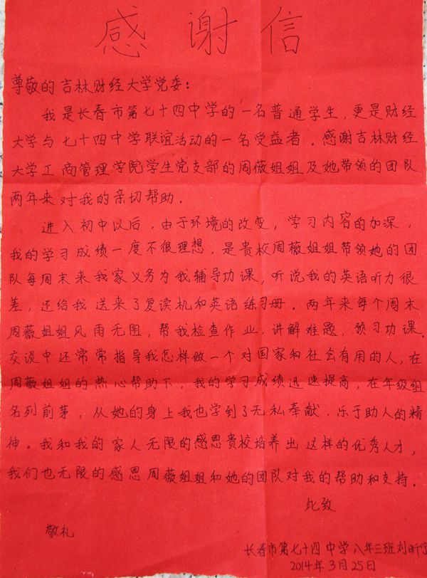 2014亚泰工商管理学院帮扶七十四中困难学生