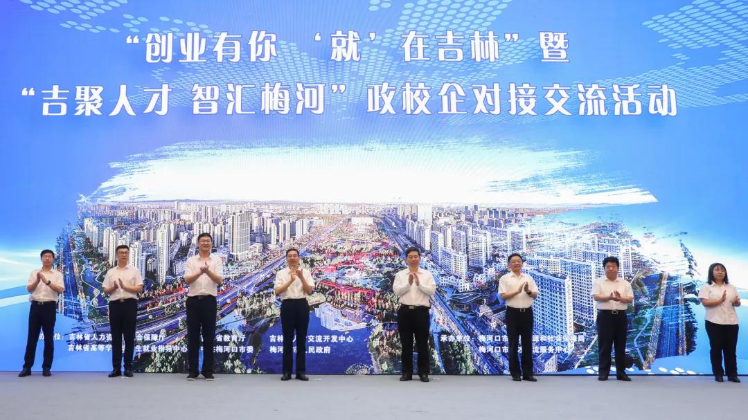 本网讯 (招生就业处 供稿)7月14日,“创业有你‘就’在吉林”暨“吉聚人才 智汇梅河”政校企对接交流活动在梅河口市国际会议会展中心举行。省人社厅副厅长张立福,省政府教育督导委员会总督学岳强,省人才中心副主任郭毅,梅河口市委副书记、市长牟大鹏,kaiyun官网党委副书记、校长孙杰光,副校长刘鹤以及吉林大学、东北师范大学等50余所高校代表共计600余人参加活动。首先,市委副书记、市长牟大鹏代表市委市政府致辞,指出当前梅...