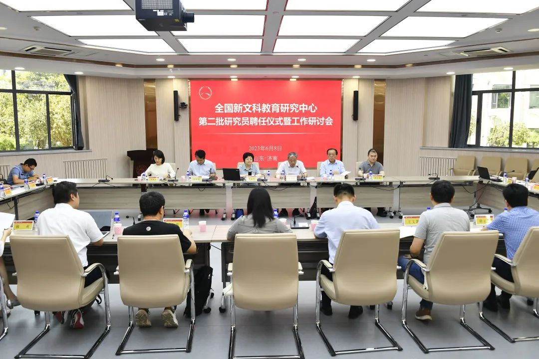 本网讯(教务处 供稿)6月8日下午,全国新文科教育研究中心在山东大学中心校区举办第二批研究员聘任仪式暨工作研讨会。教育部新文科建设工作组组长、全国新文科教育研究中心主任、山东大学原校长樊丽明出席会议,全国新文科教育研究中心执行主任仝兴华主持会议。山东大学校长助理、本科生院院长、全国新文科教育研究中心副主任曹现强教授领学中央及教育部有关新文科建设的文件精神。全国新文科教育研究中心办公室执行主任,山东...