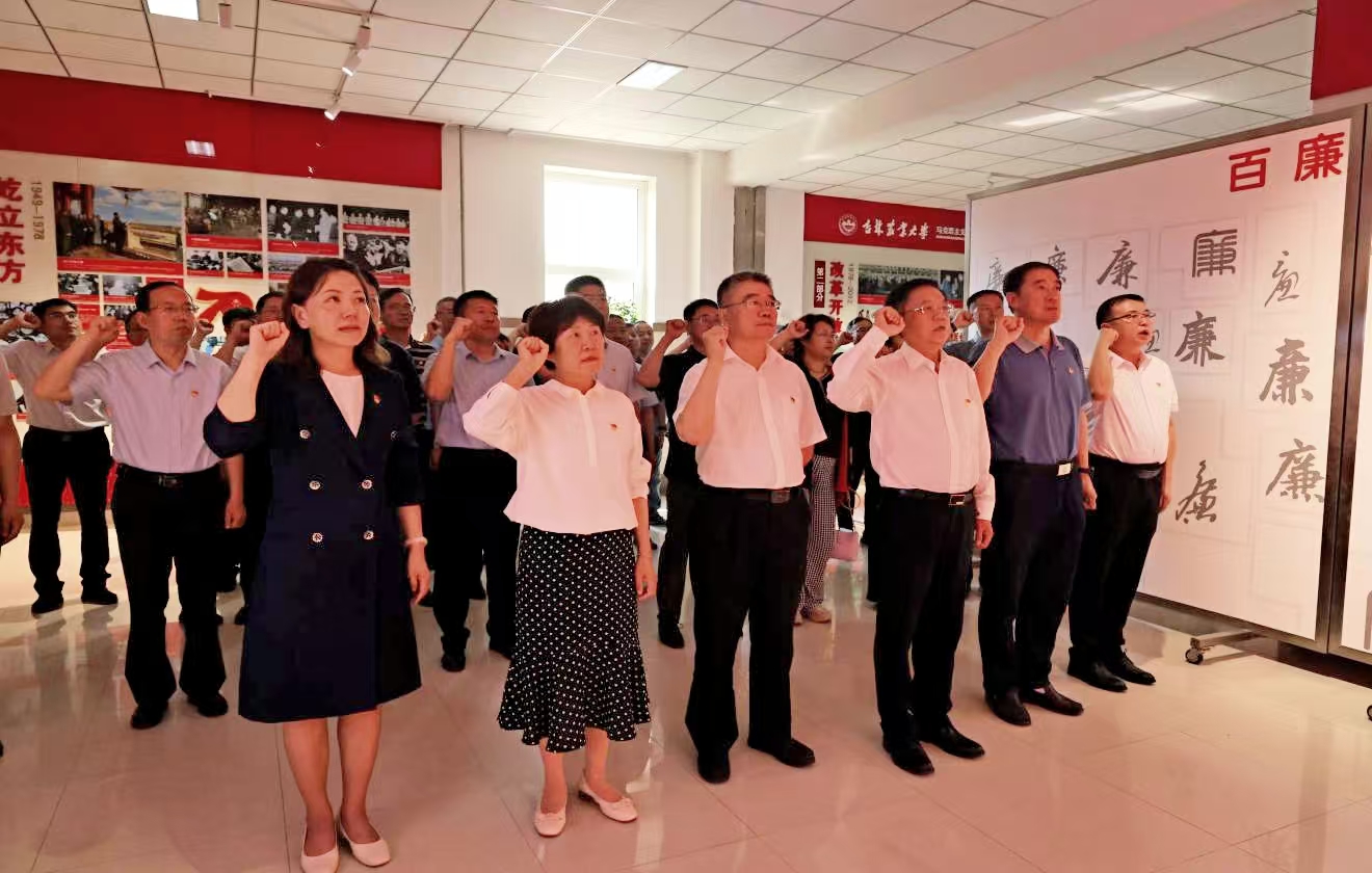 本网讯(纪检监察综合办公室 供稿)为深入贯彻落实习近平总书记关于党的自我革命的重要思想和关于全面加强党的纪律建设的重要论述,推动党纪学习教育不断走深走实,7月1日,学校党纪学习教育领导小组组织全校党员干部赴吉林省教育系统廉政教育基地开展警示教育暨党纪学习教育。吉林省教育系统廉政教育基地由吉林农业大学承建,又名“利剑之光”廉政教育展馆。在吉林农业大学党委书记张殿锋陪同下,学校党员干部先后参观了“不敢...