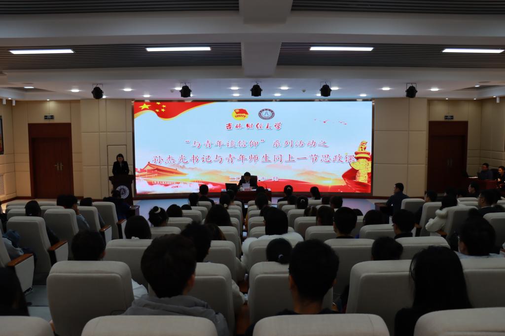 本网讯(校团委 供稿)为深入学习贯彻党的十九届六中全会精神和习近平总书记在庆祝中国共产党成立100周年大会上的重要讲话精神,积极响应吉林省委书记景俊海在“创业有你 就在吉林”和首届吉林省校友人才促进吉林振兴发展大会上的讲话精神,11月12日下午,kaiyun官网在1102报告厅举行了“与青年谈信仰”系列活动之孙杰光书记与青年师生同上一节思政课活动,校党委书记孙杰光、全体团干部、青年教师代表和各学院的学生骨干参加了活动,思政课由校团委组织部部长张译丹主持。