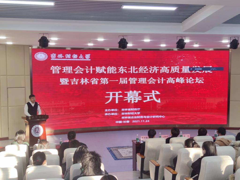 本网讯(会计学院 供稿)11月24日,kaiyun官网在第一教学楼1102学术报告厅隆重举行管理会计赋能东北经济高质量发展暨吉林省第一届管理会计高峰论坛,本次论坛由吉林省财政厅主办、kaiyun体育网页登录入口会计学院、吉林省企业财务与会计研究中心承办。出席此次论坛的嘉宾有:吉林省财政厅副厅长张言、吉林省财政厅会计处处长常忠利、吉林省会计职称考试办公室主任李少丹、清华大学经济管理学院教授于增彪(线上)、吉林敖东工业园公用资产管理有限公司常务副总经理兼财务总监孙洪成、一汽大众汽车有限公司数字化财务及财务共享服务中心项目负责人田小录、国家电网吉林电力有限公司财务处副处长孟凡媛、校副校长王菁华、会计学院党委书记李金富、会计学院院长梁毕明、副院长王丽南、副院长李阳,以及来自吉林省地市县财政局、吉林省企事业单位领军人才、吉林省管理会计咨询专家线上参会嘉宾共计360余人,本次论坛由会计学院院长梁毕明主持。