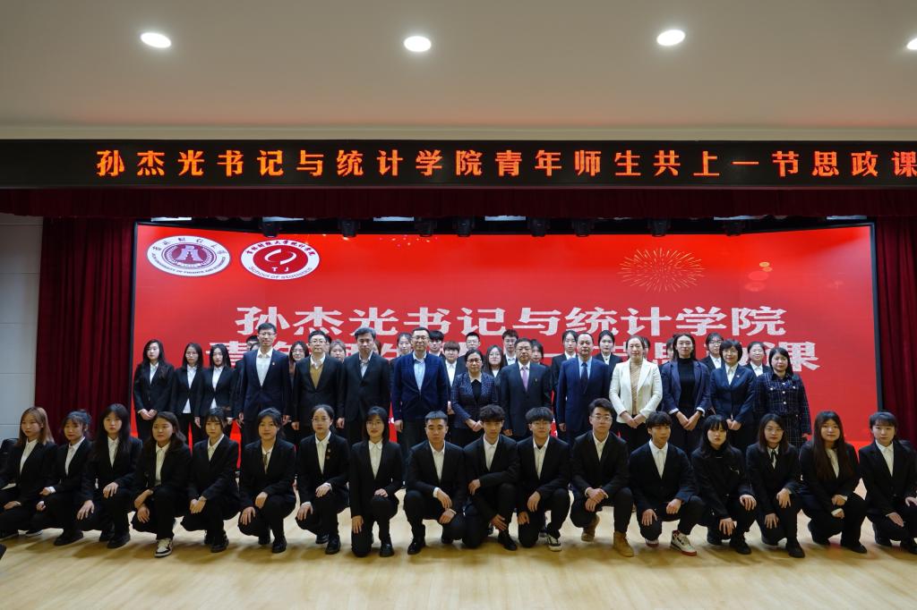思政课上,孙杰光首先围绕学习习近平总书记在党的十九届六中全会上发表的重要讲话以及全会审议通过的《中共中央关于党的百年奋斗重大成就和历史经验的决议》等重要文件,介绍了党的十九届六中全会的基本情况和主要内容。他强调,全会通过的《决议》,凝练概括党的百年光辉历程,清晰定位中华民族奋勇前行的时代航标,是我们全面建设社会主义现代化国家、向第二个百年奋斗目标进军的根本遵循。特别是全会开创性提出“两个确立”,反映了全党全军全国各族人民共同心愿,对新时代党和国家事业发展、推进中华民族伟大复兴历史进程具有决定性意义。接着,孙杰光以“十个坚持”为主线,从坚持党的领导,坚持人民至上,坚持理论创新,坚持独立自主,坚持中国道路,坚持胸怀天下,坚持开拓创新,坚持敢于斗争,坚持统一战线,坚持自我革命十个方面,结合学习党的十八大以来习近平总书记关于“十个坚持”方面重要论述的原文,结合党百年奋斗的历史阶段、历史成就、伟大的建党精神时代内涵和吉林振兴发展光明前景的理解和感悟,做了深入浅出的讲解,引导全体教师和青年学生更加全面、深刻、准确地认识和把握党的百年奋斗重大成就和重要历史经验,不断从中汲取奋进前行的智慧和力量,牢记为党为国为区域经济发展培育财经英才的初心使命。鼓励青年学子要立大志、明大德、成大才、担大任,努力成为堪当民族复兴大任的时代新人,为服务国家经济主战场和社会主义现代化新吉林贡献青春力量。