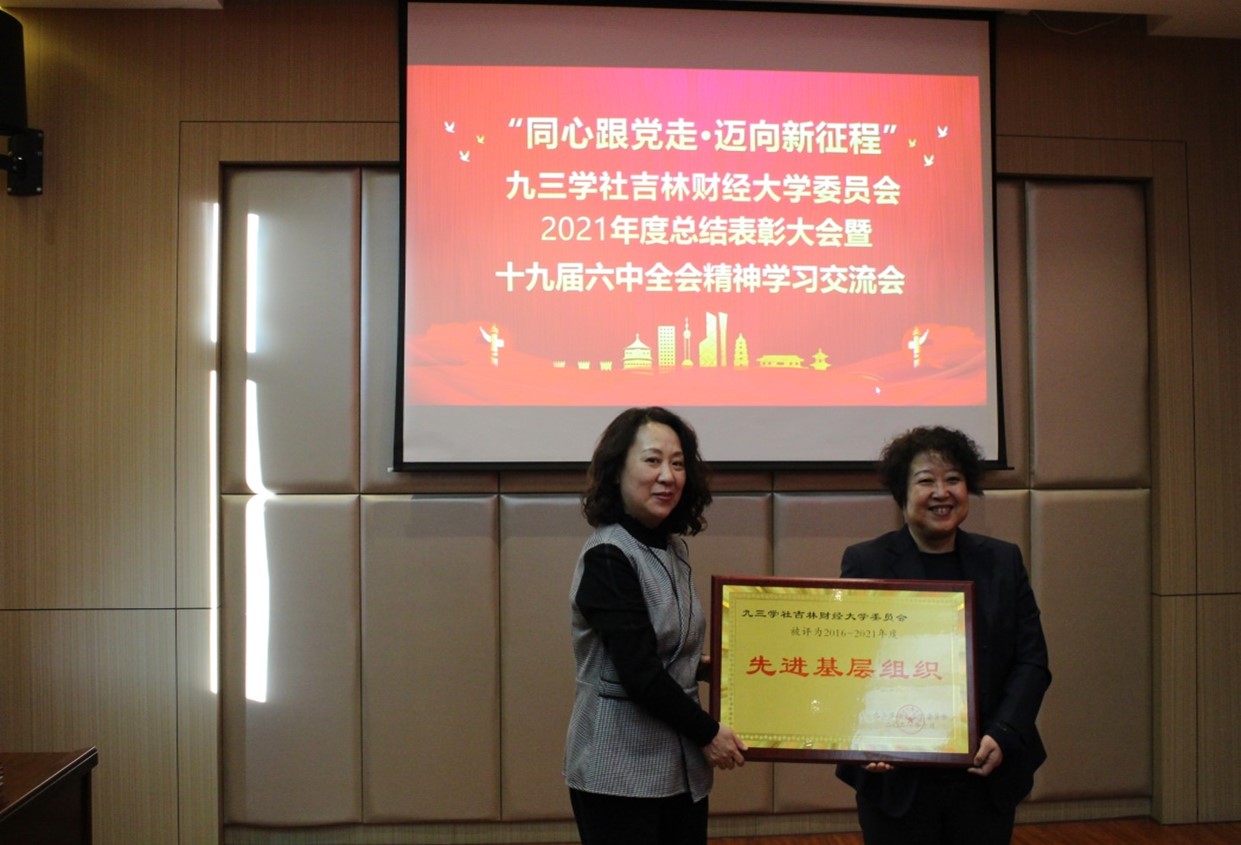 会上,顾红艳秘书长为吉财九三学社颁发“先进基层组织”牌匾,被评为“长春市九三学社优秀社务工作者”、“长春市九三学社优秀社员”、“长春市九三学社先进个人”、“kaiyun体育网页登录入口九三学社先进个人”的社员受到表彰。