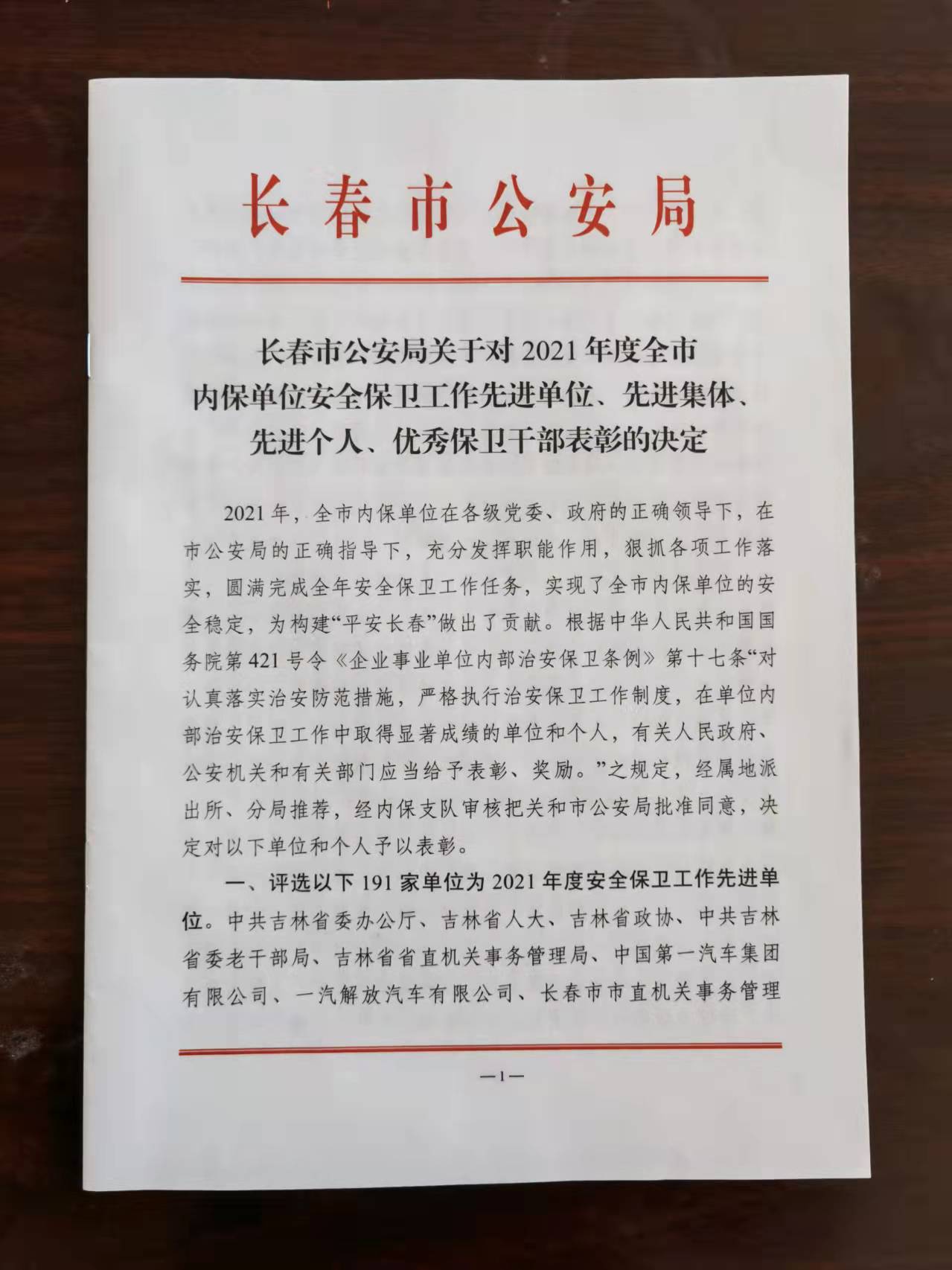 本网讯(党委安全保卫部 供稿)2021年,kaiyun官网在党委的正确领导下,狠抓各项安全工作落实,圆满完成学校全年安全保卫工作任务,实现了学校安全稳定和稳步发展,为构建“平安长春”做出了积极贡献。为此,在2021年度长春市公安局内保单位“创先争优”评选活动中,经属地派出所、分局推荐,经内保支队审核把关和市公安局批准同意,kaiyun官网被评为长春市安全保卫工作先进单位;党委安全保卫部、安全保卫处被评为安全保卫工作先进集体;副校长于金欢被评为安全保卫工作先进个人;党委安全保卫部、安全保卫处桑学江、李捍卫、关军元、罗全军、邢国全、袁野、石笑宁等七名同志被评为安全保卫工作优秀保卫干部。(审核人 桑学江)