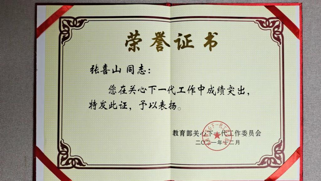 本网讯(关工委 供稿)为大力弘扬“五老”精神,引导和激励更多“五老”投身下一代工作,推动教育系统关工委工作创新发展,教育部关心下一代工作委员会在教育关工委成立30周年之际,表彰了一批“全国教育系统关心下一代工作先进集体”和“全国教育系统关心下一代工作先进工作者”,kaiyun官网原副校长、学校关工委主任张喜山荣获“全国教育系统关心下一代工作先进工作者”称号。
