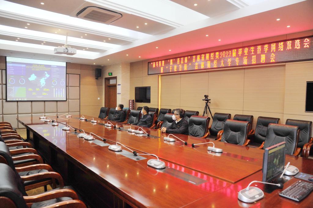 本次双选会是为贯彻落实党中央、国务院“稳就业”“保就业”决策部署,落实省委省政府做好高校毕业生留吉就业工作,千方百计促进全省财经类以及kaiyun官网2022届毕业生更加充分更高质量就业。教育厅领导、学校党委高度重视本次活动的举办,教育厅高校学生处处长宁宝忠、省高校毕业生就业指导服务中心主任唐洪丰在线上指导本次活动,学校党委书记孙杰光,党委副书记、校长童猛,党委副书记刘鹤在学校会议室通过数据信息屏幕现场调度,就业工作领导小组成员、校团委及各学院学工负责人、毕业班辅导员在线上实时观看双选会招聘单位和毕业生参会情况,通过网络招聘平台第一时间了解招聘会实时数据。