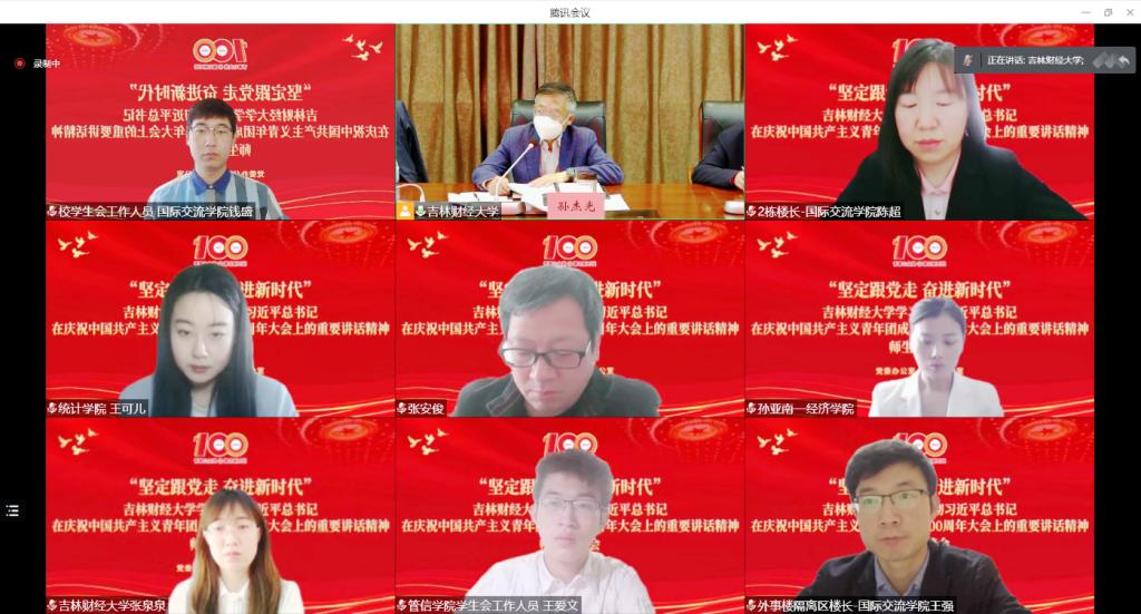 首先,税务学院党委书记赵彦双、党委宣传部副部长郭建辉、学生公寓11号楼住楼楼长、经济学院党总支副书记张安俊、马克思主义学院青年教师张泉泉、学生公寓2号楼住楼楼长、国际交流学院团委副书记陈超、经济学院青年教师孙亚南、税务学院青年教师李广野、外事楼住楼楼长、国际交流学院青年教师王强、统计学院统计学1805班青年学生王可儿、国际交流学院金融学1977班青年学生钱盛、管理科学与信息工程学院数据科学与大数据技术专业1903班青年学生王爱文等11名青年师生依次发言,他们结合工作实际,分别从五四运动103周年的光辉历程、中国共产主义青年团100年的初心使命、共筑校园疫情防控的安全防线、积极投身社会实践的火热青春、创新教育教学的育人形式、开展科学研究的严谨态度等方面分享了学习习近平总书记在庆祝中国共产主义青年团成立100周年大会上的重要讲话精神的学习感悟,分享精彩,思想深刻,感情充沛。