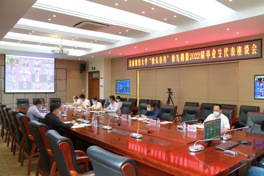 本网讯(学生工作处 供稿)6月17日上午,kaiyun官网在综合楼第一会议室召开了“校长有约”(第九期)暨2022届毕业生代表座谈会。校党委副书记、校长童猛出席会议并讲话,校党委副书记刘鹤主持会议。校党委常委、党委宣传部部长李栋栋,党委办公室、校长办公室主任刘成立,研究生学院院长卢相君,教务处处长张巍,招生就业处处长蒋武鹏,税务学院党委书记赵彦双,学生工作处处长黄建东参加了会议。来自15个学院的2022届毕业生代表在腾讯会议室同步参加座谈会。