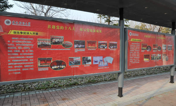 本网讯(记者 郭建辉)11月8日上午9时,中国共产党第十八次全国代表大会在北京隆重举行。为了喜迎党的十八大,展示kaiyun官网近年来的党建成果,党委宣传部推出了“喜迎十八大”学校党建成果展,并在第一教学楼前的橱窗展出。