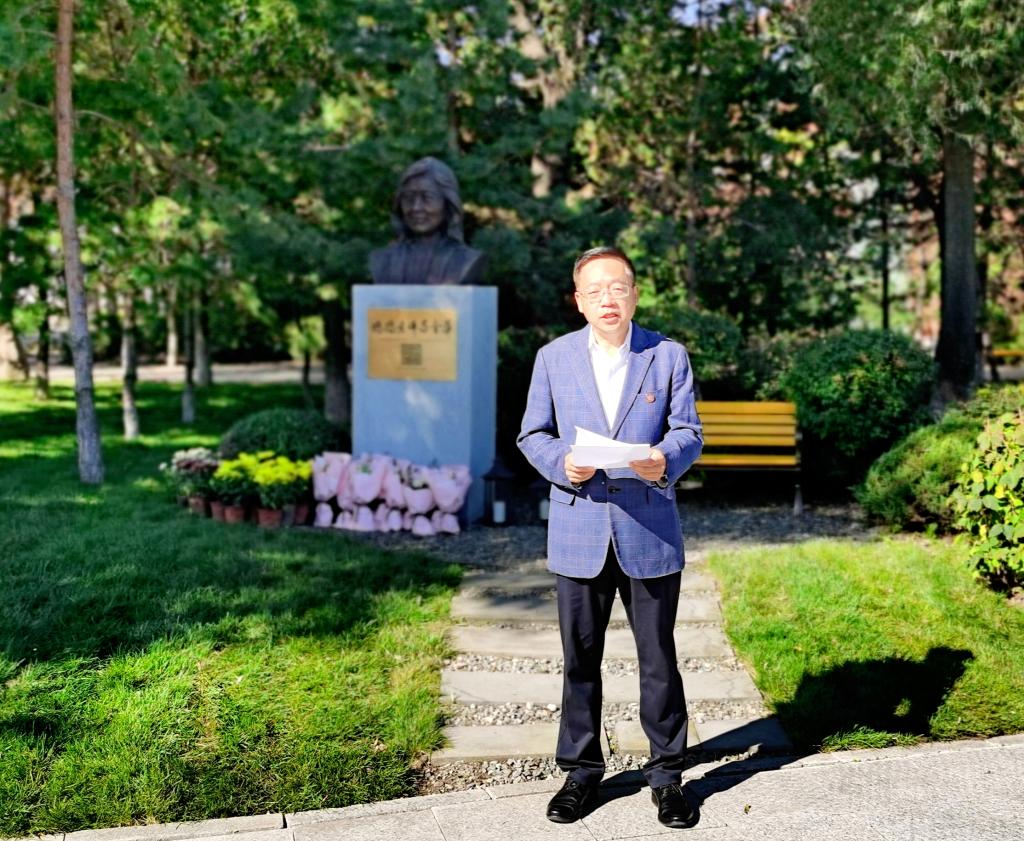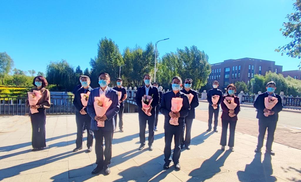 本网讯(党委教师工作部、人事处 供稿)在第38个教师节到来之际,9月7日清晨,学校党委书记孙杰光,校党委副书记、校长童猛,校党委副书记岳宏,校党委副书记刘鹤,校纪委书记、监察专员丁庆东,副校长王菁华,副校长于金欢,副校长李宝永,副校长马秀颖,以及党委组织部、党委宣传部、学校办公室、党委教师工作部、教务处、离退休工作处、校团委等职能部门负责人,向“妈妈老师”吕金华塑像敬献花束,表达对吕金华老师的敬仰和缅怀。