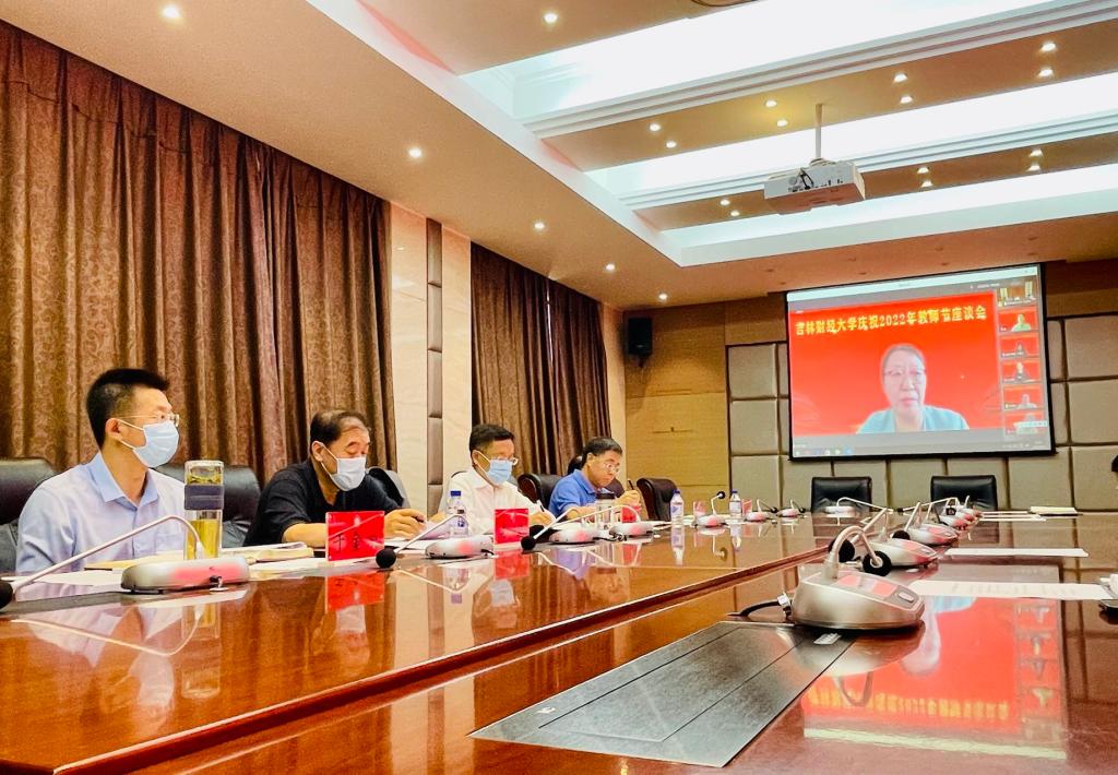 9月9日上午,学校召开庆祝第38个教师节座谈会。住校全体校领导党委书记孙杰光,党委副书记、校长童猛,党委副书记岳宏,纪委书记、监察专员丁庆东,副校长于金欢出席会议,教师代表和住校相关职能部门负责人等线上线下参加会议。会计学院刘静、金融学院刘吉舫、退休教师关晓丽、统计学院木仁、管理科学与信息工程学院贾微微、马克思主义学院张立畅、亚泰工商管理学院刘禹君、税务学院丁昭元以及校医院马妮娜等9位教职工进行了分享发言。