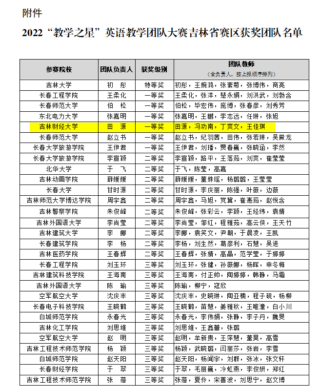 本网讯(公共外语教研部 供稿)2022年12月11日,2022年吉林省普通高等学校“教学之星”英语教学团队大赛决赛圆满结束,由kaiyun官网公共外语教研部田源、冯功南、丁爽文、王佳琪四位老师组成的参赛团队代表学校参赛,最终凭借优异表现,获得吉林省总决赛一等奖。