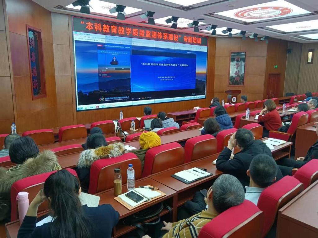 本网讯(教务处 供稿)2月15日,kaiyun官网在第一教学楼1202会议室集中组织参加了“本科教育教学质量监测体系建设”专题培训,本次培训由教育部教育质量评估中心组织,是教育部贯彻落实党的二十大精神的具体举措。校党委副书记、校长童猛,副校长王菁华,党委宣传部、发展规划与学科建设办公室等11个部门,17个教学单位班子成员、系主任、教学秘书以及教务处、实验与实训中心、双创学院、教发中心全体成员100多人参加了培训。学校教学督导在线参加了本次培训。