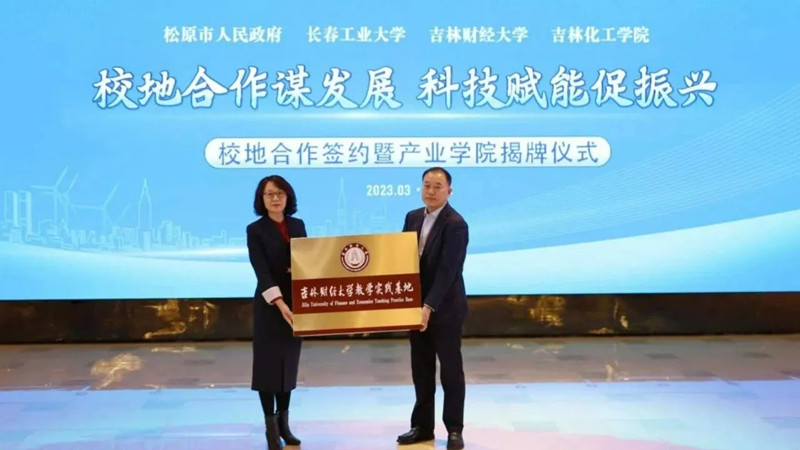 学校党委书记孙杰光在会上致辞,他首先对松原市委、市政府为推动双方合作向更深层次迈进给予的支持和帮助表示感谢,特别是疫情防控期间学生离校返乡过程中给予的帮助表达深深谢意。他表示,这次双方签订系列务实合作协议,是深入贯彻落实习近平总书记关于教育的重要论述和视察吉林重要讲话重要指示精神,认真落实省委“一主六双”高质量发展战略,落实就业优先战略和教育强省、人才强省战略的重要举措,相信本着优势互补、创新机制、共同发展、资源共享的合作宗旨,政产学研用必将深度融合,力争实现在财政税收、普惠金融、营商环境、冰雪经济、绿色康养、数字经济、电商产业、乡村振兴、生态旅游等方面共同组建研究、研学基地,为“一市、一地、一城”高质量发展增智、聚势、赋能,共同为在中国式现代化进程中为推动吉林全面振兴取得新突破贡献智慧和力量。