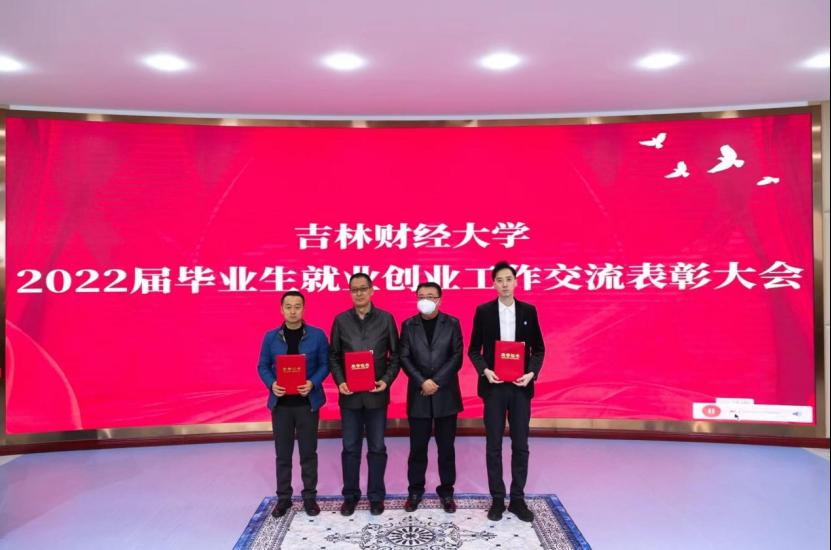 校党委副书记刘鹤宣读了《关于奖励2022届毕业生留省就业工作绩效达标学院的决定》,校党委书记孙杰光,党委副书记岳宏,纪委书记、监察专员丁庆东,副校长于金欢为留省就业工作绩效达标的学院颁发奖状。