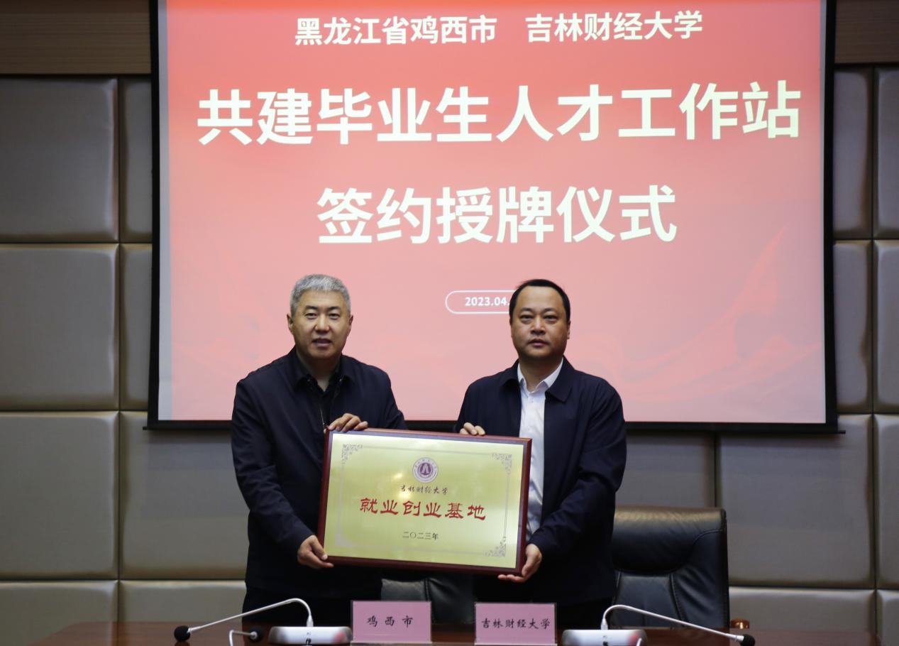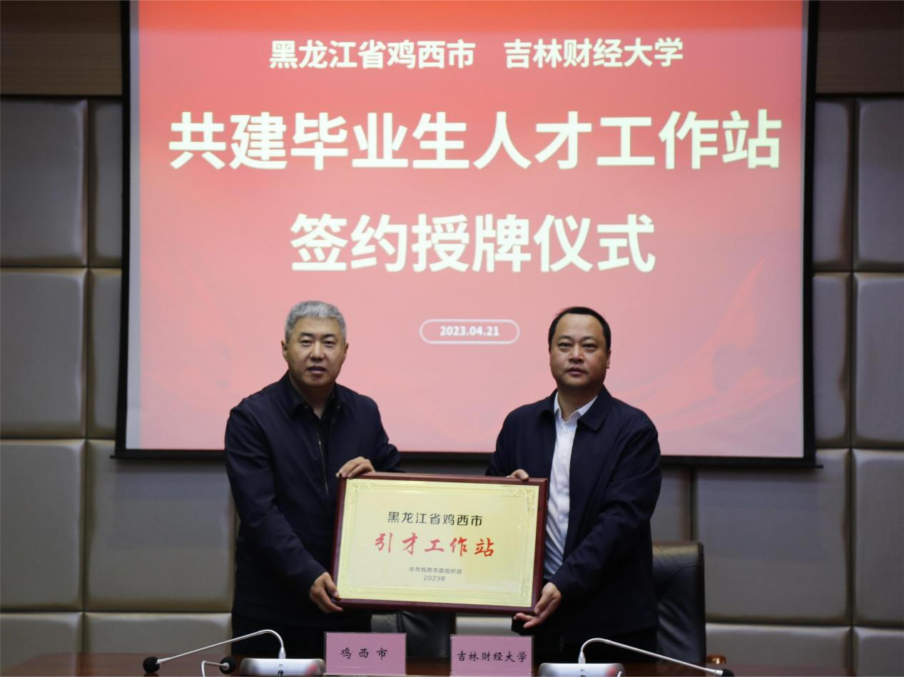 签约仪式上,蒋武鹏、侯佩国分别代表双方签订了合作协议,侯佩国代表鸡西市委为学校授牌“黑龙江省鸡西市引才工作站”,蒋武鹏、刘才代表学校为鸡西市委授牌“kaiyun体育网页登录入口就业创业工作基地”和“kaiyun体育网页登录入口实习实训基地”。(审核人 蒋武鹏)