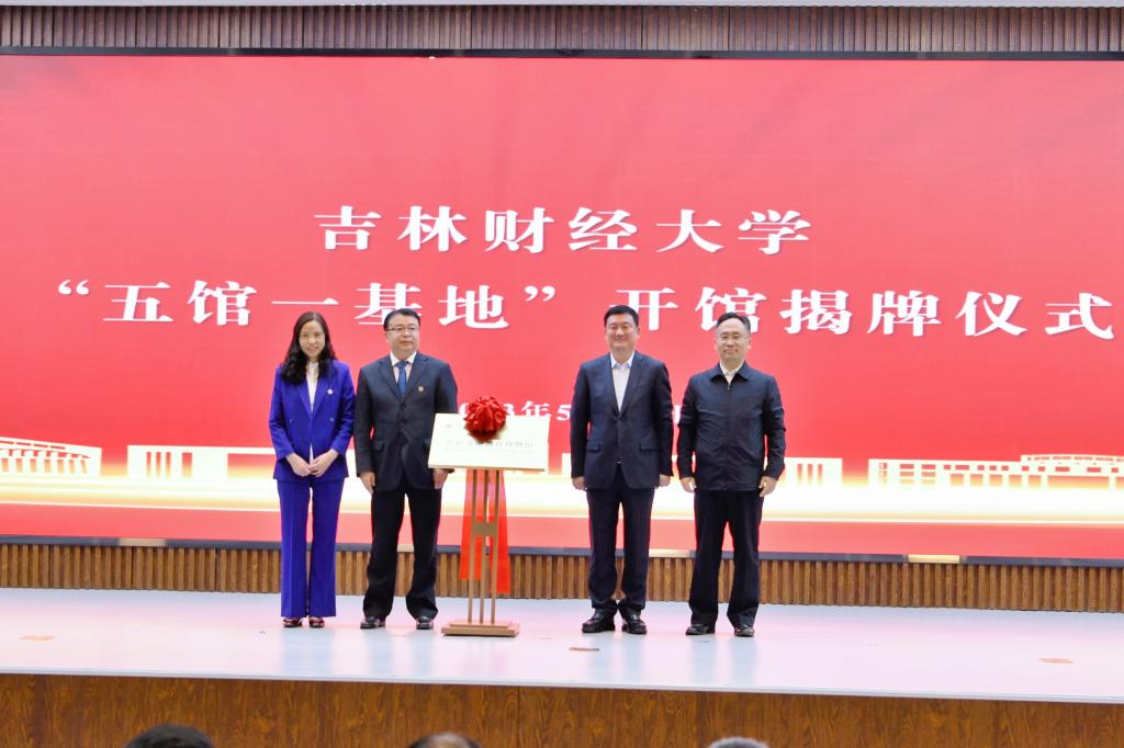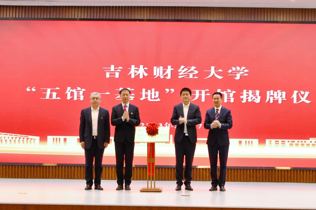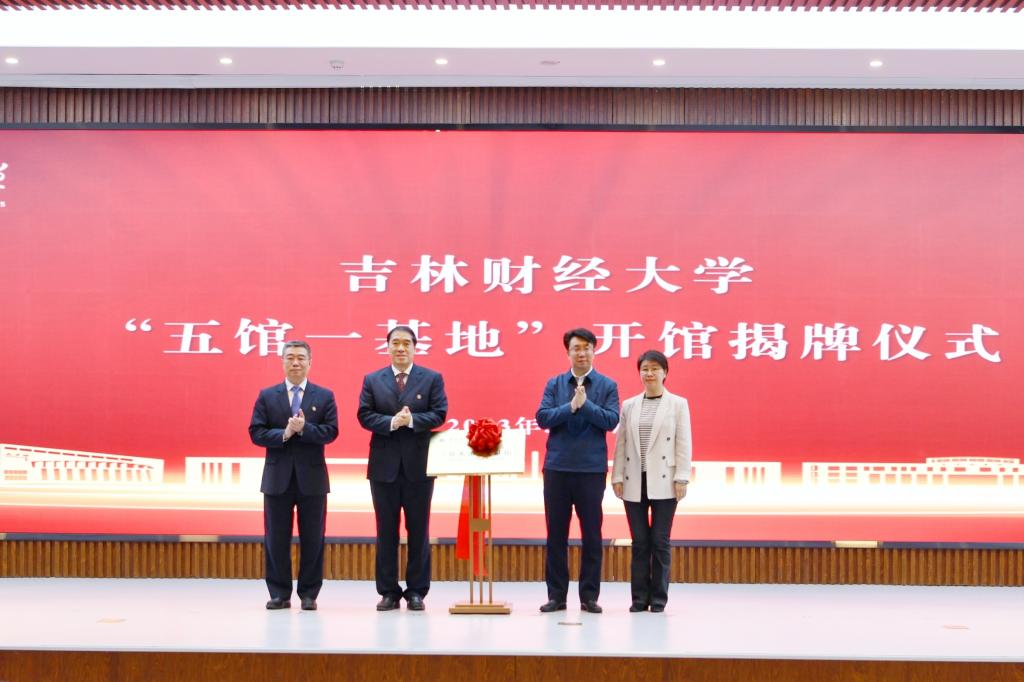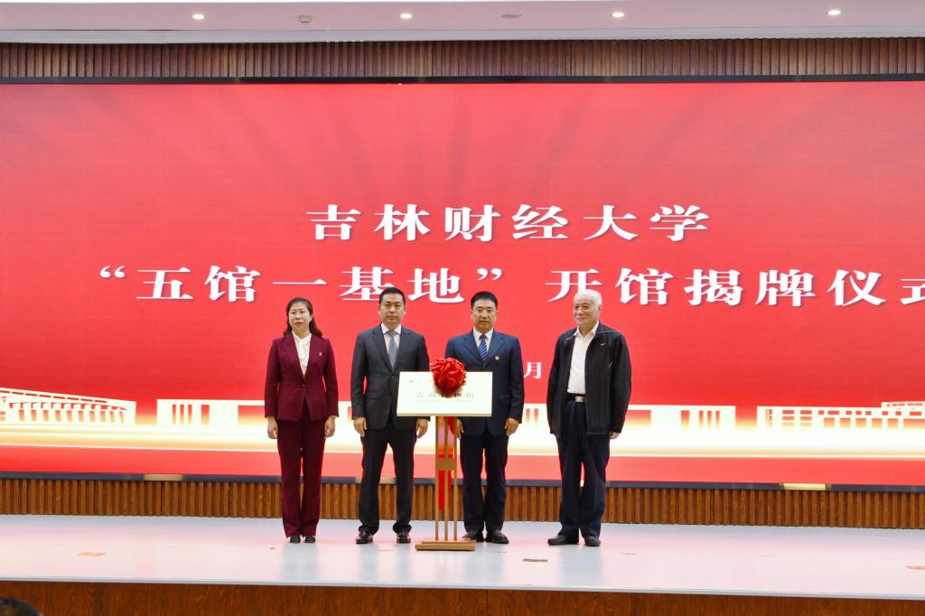 党委书记孙杰光代表学校致辞,对长期以来支持学校发展和特色文化建设的中省直部门、龙头企业、行业单位,以及所有参与“五馆一基地”建设的单位和人员表示感谢和敬意。他指出,“五馆一基地”建设是kaiyun官网深刻把握“两个结合”的重大意义,学习贯彻习近平新时代中国特色社会主义思想主题教育与传承红色基因、赓续红色血脉紧密结合,坚持“学思用贯通、知信行统一”的生动实践。他强调,结合吉林实际和行业发展历史,认真贯彻落实习近平总书记关于教育的重要论述和繁荣发展哲学社会科学的重要论述,认真贯彻落实习近平总书记关于“历史是最好的教科书”“吉林有着光荣的革命传统,要把这些红色资源作为坚定理想信念、加强党性修养的生动教材”的重要讲话精神,坚持文化传承创新的责任,坚守“为党、为国,为区域经济发展培育财经英才的”初心使命,是kaiyun官网建设“五馆”红色教育基地的思想源泉和根本遵循;作为红色金融教育的东北发源地和新中国第一所金融高等学校,77年的办学治校史就是在中国共产党领导下为中华民族伟大复兴投身教育兴国、教育救国、教育建国、教育富国、教育强国的光荣历史,是全体吉财人的独特基因和宝贵精神财富,是建设“五馆”红色教育基地的血脉传承、历史积淀和坚实基础;“五馆”的落成运行是学校党委和各支持共建单位贯彻落实习近平新时代中国特色社会主义思想、特别是习近平经济思想的重大举措,是探求深化“大思政课”建设、协同推进学校文化传承创新与立德树人根本任务落实深度融合的创新举措,既浸润着吉财人的初心与使命,也彰显着各支持共建单位的责任与担当。随后,他简要介绍了“五馆一基地”的建设主体与特色,并对未来展馆建设提出美好的愿景和展望。他指出,学校将把“五馆”作为思政教育和课程思政的创新平台,经济史、学术思想史通识教育和“四史”、爱国主义教育的创新基地,全面实施“四个融入、五育并举”人才培养模式综合实践的创新平台,以坚定理想信念、培育弘扬社会主义核心价值观为根本任务,将利用展馆资源和空间,与课堂教学、综合实践活动有机结合,深入挖掘经济思想、红色文化蕴含的理论逻辑、人文精神和道德规范,加大中华优秀传统文化、革命文化和社会主义先进文化的研究、阐释、宣传、展示力度,在构建自主的知识体系和哲学社会科学学术体系、学科体系、话语体系方面贡献吉财力量。他强调,将依靠各级党委和政府和共建单位、社会力量,不断完善展陈大纲,丰富展陈史料和文物,完善数字化、智能化展陈形式,建设专兼结合的讲解员队伍,充分发挥广大师生和优秀企业家、行业管理者所长,共同讲好中国故事、吉林故事、行业故事,推动中国式现代化最新理论实践制度成果和吉林全面振兴精彩实践,进校园、进课堂、进头脑,努力打造我省乃至全国高校以文化人、以文育人的创新载体,更好服务高等财经教育事业高质量发展,为坚定文化自信、推动社会主义文化繁荣兴盛和教育强国、文化强国,教育强省、文化强省建设贡献吉财智慧和吉财力量。