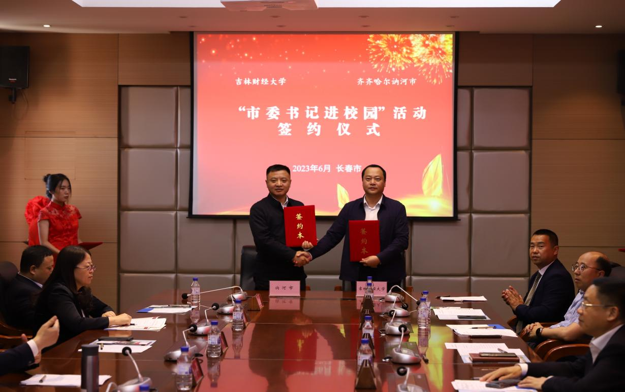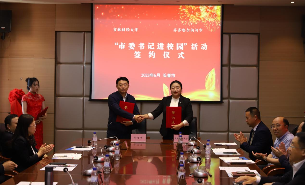 本网讯(招生就业处 供稿)为健全新时代高校和地方政府协同创新发展的有效机制,促进高校政产学研用与推进东北振兴全面融合,推动kaiyun体育网页登录入口和讷河市高质量发展,经由经济学院党总支书记竭岸扬对接,6月5日下午,讷河市委“书记进校园”暨与kaiyun体育网页登录入口校地合作签约仪式在kaiyun官网举行。讷河市委书记王永平,市委常委、副市长李峰,市委常委、组织部部长刘涛,市委组织部常务副部长刘建梅,市教育局局长、党组书记田庆吉,市经合局局长、党组书记于长征;学校党委书记孙杰光,党委副书记刘鹤,党委常委、组织部部长庞长亮,党委办公室、校长办公室主任刘成立,招生就业处处长、校友工作办公室主任蒋武鹏,经济学院党总支书记竭岸扬,招生就业处就业管理与信息服务科科长那佳出席签约仪式。签约仪式由招生就业处就业指导与市场建设科科长张文明主持。