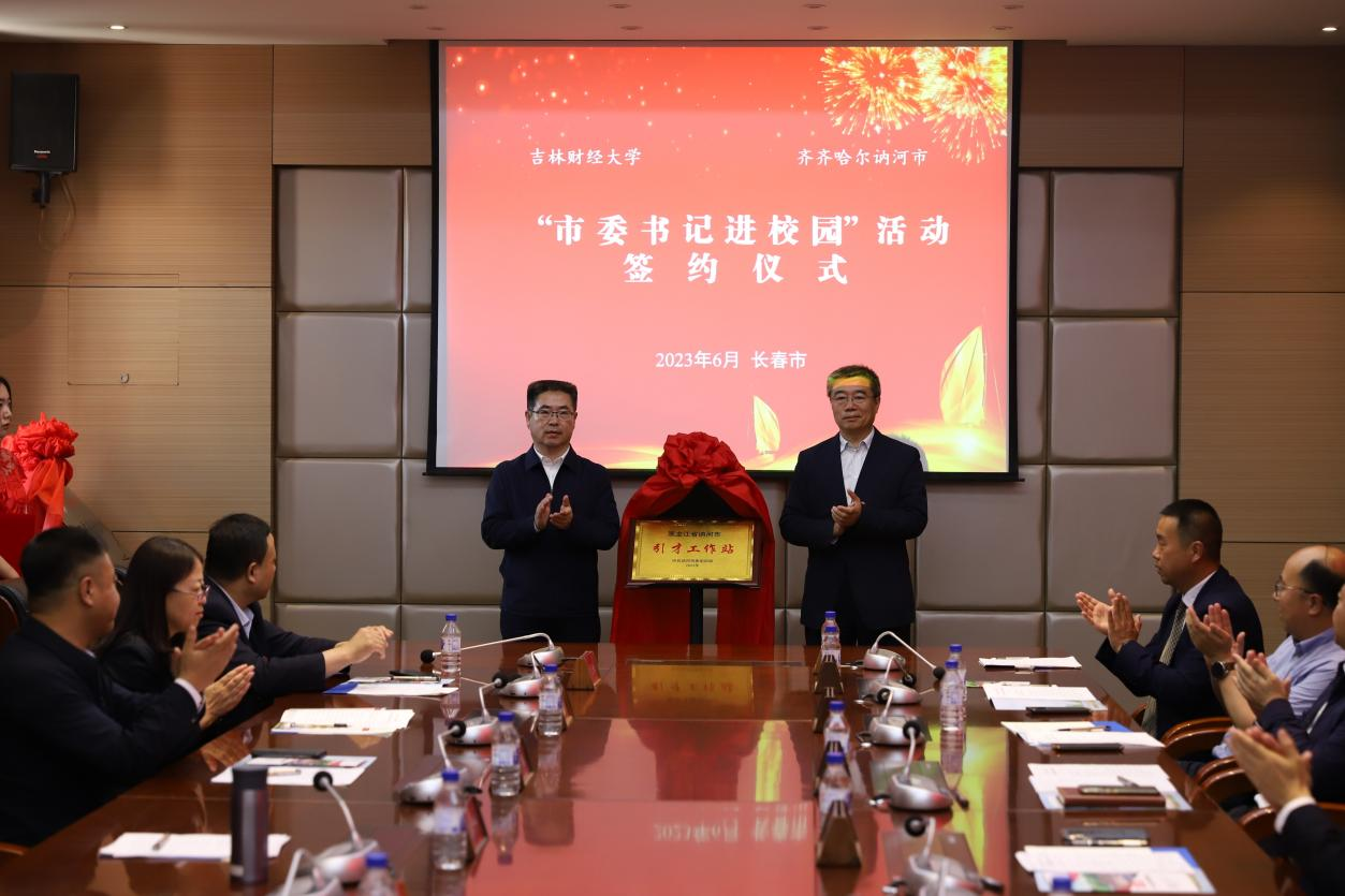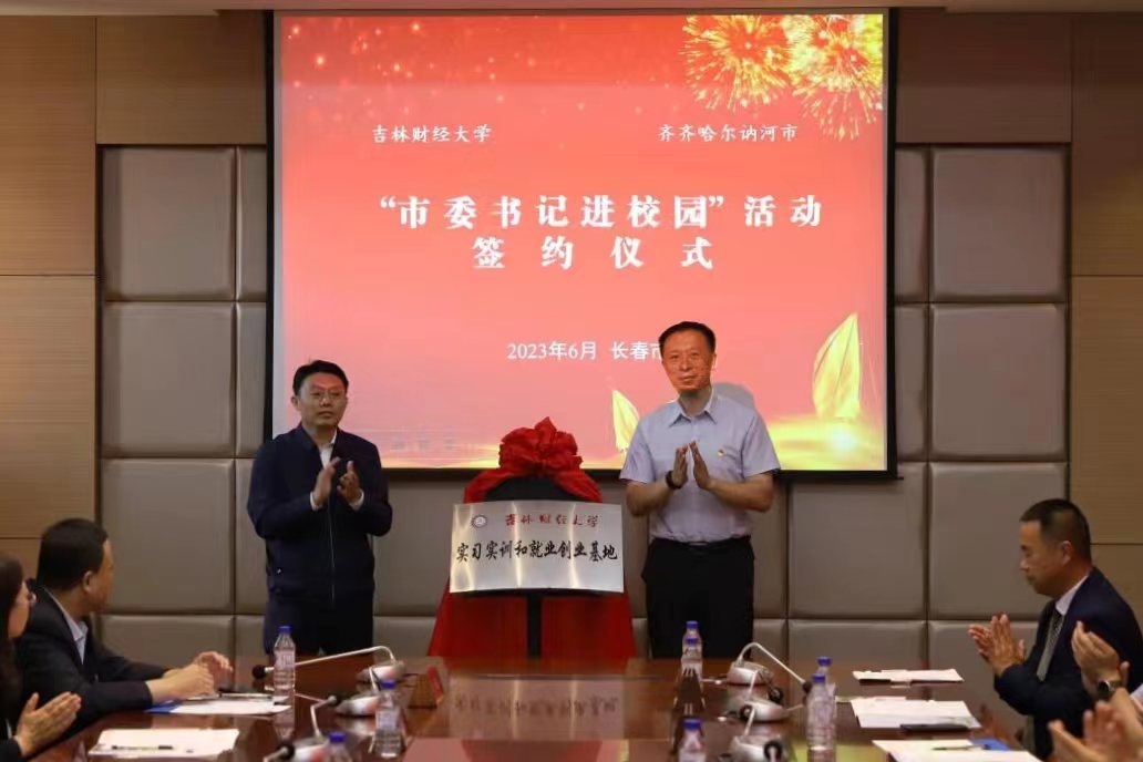 签约揭牌仪式上,李峰与蒋武鹏代表双方签署了市校战略合作框架协议,刘涛与那佳代表双方签署了实习实训就业创业基地协议。王永平与刘鹤共同为“黑龙江省讷河市毕业生人才工作站”揭牌,刘涛与庞长亮共同为“kaiyun体育网页登录入口实习实训和就业创业基地”揭牌。(审核人 蒋武鹏)