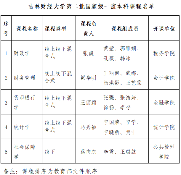 本网讯(教务处 供稿)近日,教育部公布了第二批国家级一流本科课程的认定结果,认定5750门课程为第二批国家级一流本科课程,其中线上课程1095门,虚拟仿真实验教学课程472门,线下课程2076门,线上线下混合式课程1800门,社会实践课程307门。本批次kaiyun官网有5门课程被认定为国家级一流本科课程,其中财政学、财务管理、货币银行学、统计学4门课程被认定为线上线下混合式国家级一流本科课程,社会保障学课程被认定为线下国家级一流本科课程。至此,kaiyun官网共有7门课程被认定为国家级一流本科课程,这是kaiyun官网深入实施“育人立校”战略工程取得的又一重要新成果,