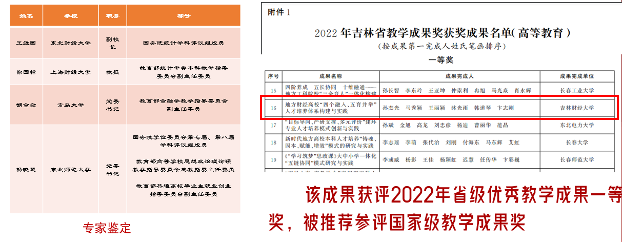 历经四年改革实践,学校在人才培养模式改革方面取得了积极可喜的成效。学校被评为吉林省高校“三全育人”综合改革试点院校、荣获全国无偿献血促进奖。近三年,6368名学生参与无偿献血,累计献血191万毫升;3260名学生参加疫情防控工作和志愿服务活动,累计服务时长66万小时;学生在学科竞赛、创新创业大赛等活动中获国家级奖项和荣誉826项,省级荣誉和奖项2156项,市级荣誉和奖项230项。毕业生就业质量和留吉就业率不断提升,在《2020软科中国大学造就财经人才排名》中,学校在全国高校中位列31位,在全国财经类高校中位列11位;2022年度麦可思就业质量评价调查指出,学校的“学生收入、专业相关度、职业满意度、就业稳定性”四个持续提升。