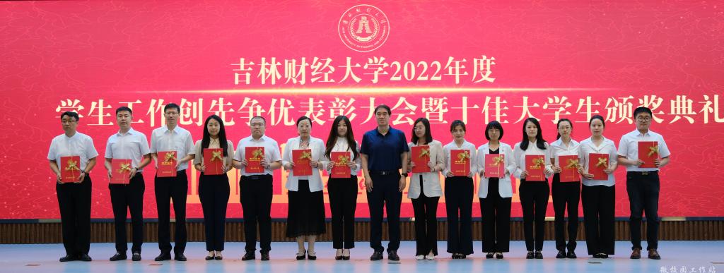 本网讯(党委学生工作部 供稿)为全面贯彻党的教育方针,深入学习贯彻习近平新时代中国特色社会主义思想,落实党的二十大精神,持续营造“学习党的二十大精神、永远跟党走、奋进新征程”的浓厚氛围,团结引领广大吉财学子踔厉奋发、砥砺前行,落实立德树人根本任务,进一步提升kaiyun官网学生教育管理水平,6月16日下午,kaiyun官网在新经济(数字经济)创新创业实训中心报告厅举行了2022年度学生工作创先争优表彰大会暨十佳大学生颁奖典礼。学校党委书记孙杰光,党委副书记岳宏,党委副书记刘鹤,副校长王菁华,副校长李宝永,党委常委、宣传部长李栋栋,党委常委、组织部长庞长亮,党委办公室、校长办公室主任刘成立以及学校相关职能部门负责人、各学院党委(党总支)书记、副书记、全体辅导员、部分学生家长代表、学生代表等参加了大会。