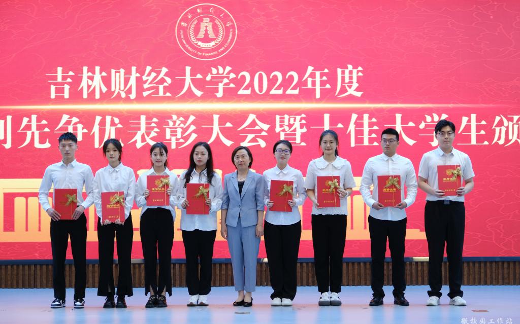 最后,孙杰光发表了热情洋溢的总结讲话。他首先对获得表彰的学生和集体以及当选十佳大学生的各位同学表示热烈的祝贺,向长期奋战在育人工作第一线的学工队伍表示衷心的感谢,向始终关注学校建设发展、为同学们的成长成才呕心沥血的家长们送去诚挚的问候。随后,他饱含深情的回顾了在2022年的校园疫情防控工作中,吉财学子面对风险挑战,不畏艰难,冲锋在疫情防控第一线上的感人事迹;高度肯定了全体学工人在校园疫情防控期间表现出特别能吃苦、特别能战斗、特别能奉献、特别能担当的精神。最后,他向大家提出了三点希望,一是要坚定理想信念,让奋斗的脚步更稳。要深刻领悟“两个确立”的决定性意义,增强“四个意识”、坚定“四个自信”、做到“两个维护”;做到理想坚定、信念执着、不怕困难、勇于开拓,一步一个脚印,向着美好未来和最高理想勇敢前进。二是要勇于担当使命,让奋斗的后劲更足。希望同学们不虚度光阴、不逃避困难,担使命、扛责任、求学问、练本领,在与国家同发展、与时代同进步的征程中,收获自己的成功。三是要矢志笃行实干,让奋斗的底色更亮。要深刻领会习近平总书记给中国农业大学科技学院同学的重要回信精神,发扬“自找苦吃”的奋斗精神,将“远大抱负”与“脚踏实地”结合起来,把理想抱负落到实际行动之中,在人生的赛道上跑出更好成绩。