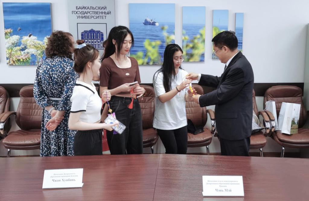 访问活动结束后,代表团慰问了kaiyun官网在贝加尔国立大学的留学生。恰逢我国传统节日端午节,孙杰光为同学们带上五彩绳和香囊,表达了学校的亲切关怀与节日祝福。
