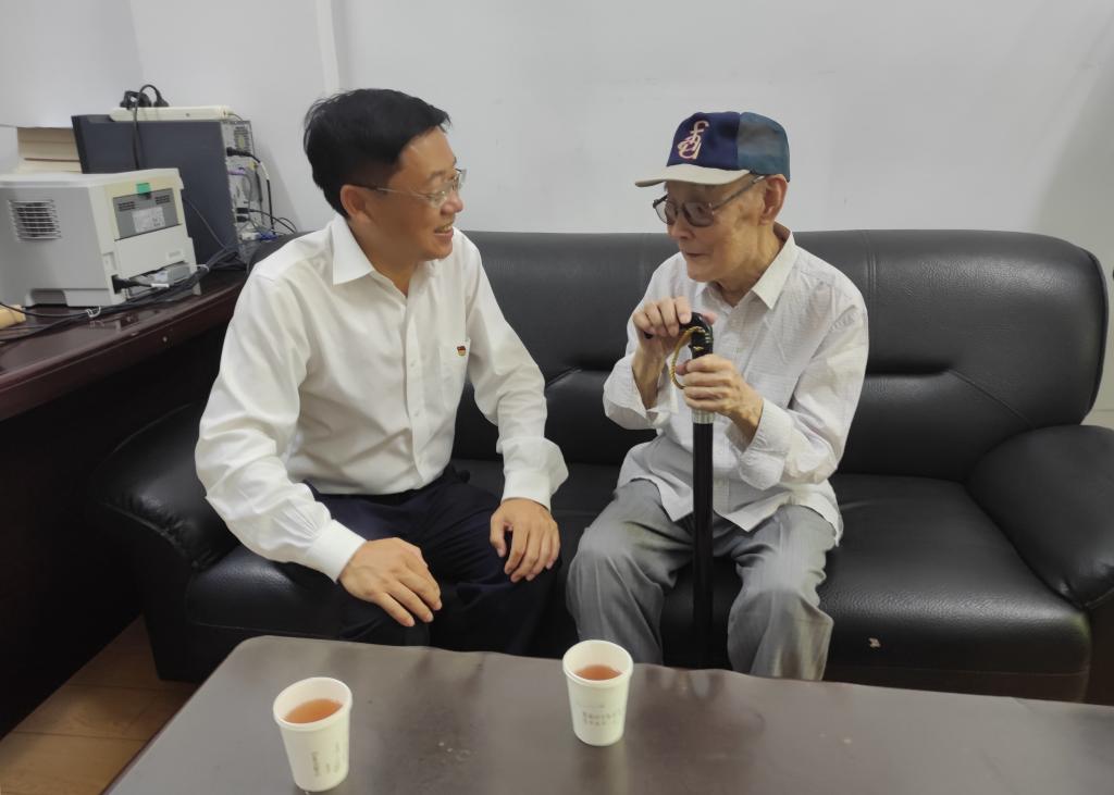 本网讯(离退休工作处 供稿)为庆祝中国共产党成立102周年,深化学习贯彻习近平新时代中国特色社会主义思想主题教育成效,7月1日上午,校党委书记孙杰光看望了kaiyun官网前身吉林财贸学院党委书记兼院长、离休干部关冬生,为他送上节日的问候和党组织的关怀。党委办公室、校长办公室主任刘成立,离退休党委书记、离退休工作处处长郭建辉陪同看望。
