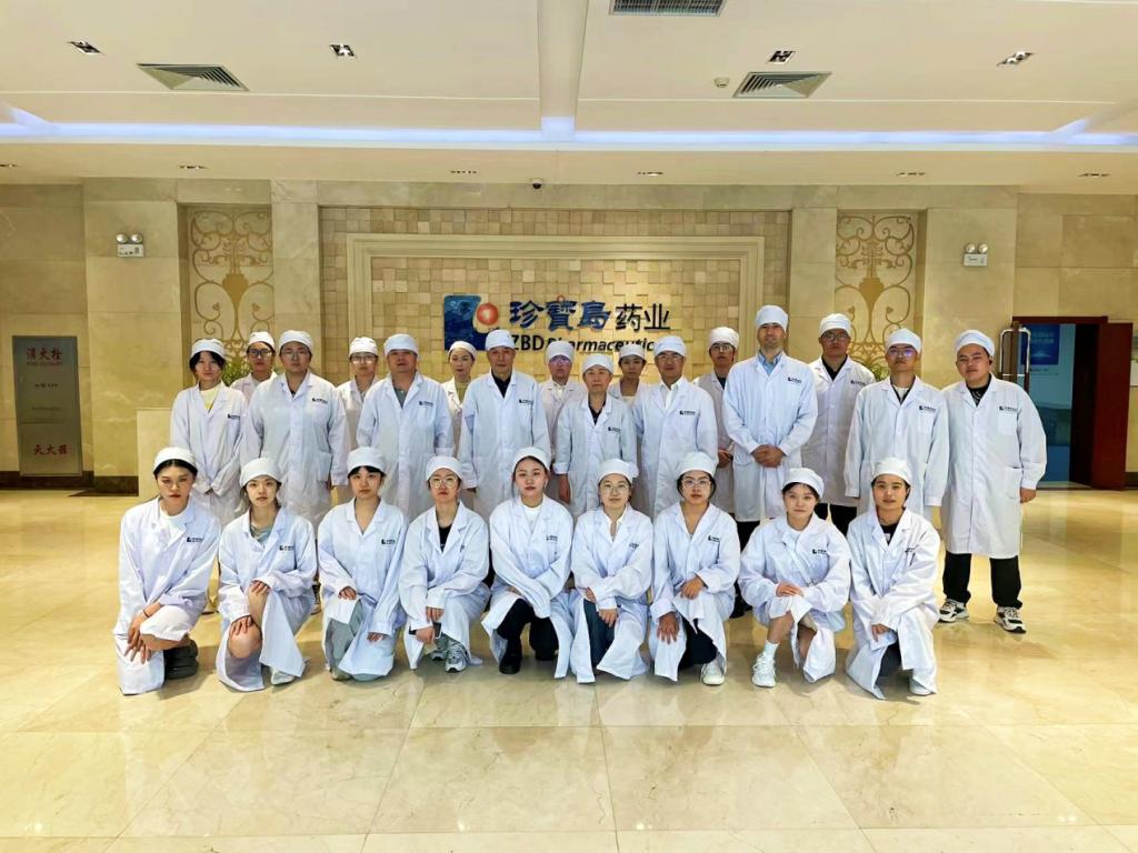 本网讯(会计学院 供稿)为深入推进校企高质量深度合作,加大访企拓岗工作力度,7月18日,由副校长王菁华带队,会计学院党委书记李金富、会计学院院长梁毕明、辅导员阿迪力及相关“珍宝岛夏令营”成员,赴黑龙江珍宝岛药业有限公司开展访企拓岗和“珍宝岛夏令营”启动仪式。黑龙江珍宝岛药业有限公司由副总裁席桂才、财务副总监贾继元、财务副总监李红媛、人力副总监李俊峰、珍宝财务副总监衣中利、医贸财务副总监刘建民和哈交财务副总监杨兆东、财务部经理王瑞等相关负责同志接待,参观了企业文化展厅、冻干生产车间、药物研究院,就相关校企合作进行深度互动交流。