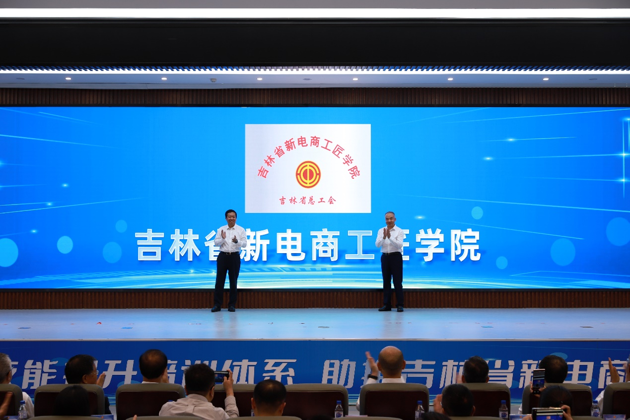 最后,省人大常委会副主任、省总工会主席范锐平与省政府副省长李国强,为吉林省新电商工匠学院揭牌。