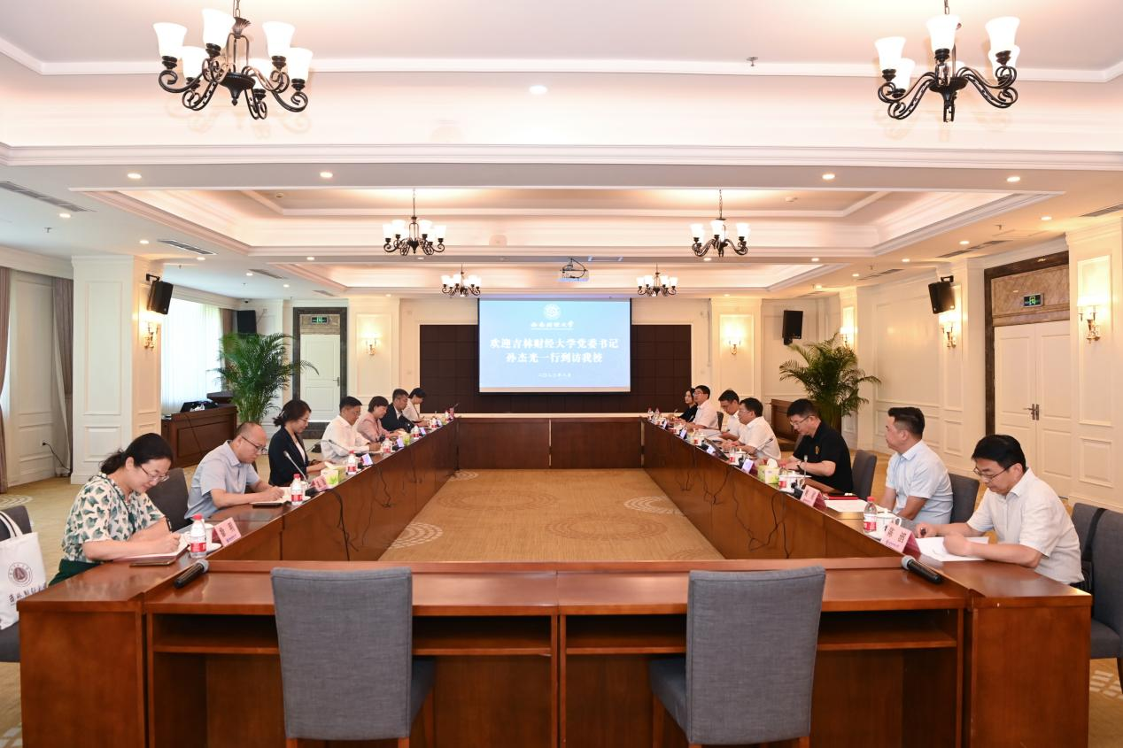本网讯(科研处 供稿)8月26、27日,学校党委书记孙杰光,副校长王菁华、副校长马秀颖带队前往西南财经大学,就学校党建引领、学科专业建设、科研服务地方和干部人才队伍建设等方面进行调研交流。西南财经大学党委书记赵德武,党委常委、副校长尹庆双、李志生出席调研座谈会。党委副书记、校长李永强陪同调研组参观了该校校史馆和货币金融博物馆。