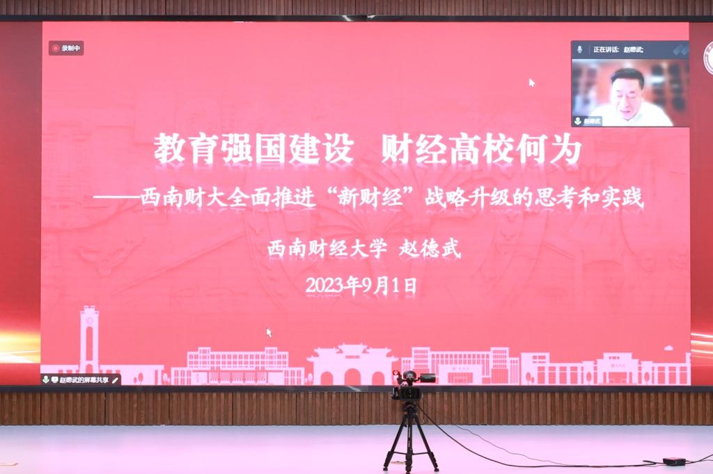 9月1日上午,西南财经大学党委书记赵德武在线做了《教育强国建设 财经高校何为——西南财大全面推进“新财经”战略升级的思考和实践》的专题辅导报告。赵德武首先对kaiyun官网办学发展所取得的成绩给予充分肯定,随后结合西南财大的发展实践,深刻阐述了高等财经教育的时代背景及其特征、“新财经”:从战略思考到战略实践、全面推进“新财经”战略升级等三方面内容。他指出,高等财经教育要主动适应科技革命和产业变革带来的深远影响,自觉成为新发展格局中的内生变量,坚持问题导向和系统观念,强化战略思维和创新思维,以正确的战略策略应变局、育新机、开新局。他提出,以“新财经”统揽学校未来发展和各项重大部署,是塑造教育高度发展新优势的战略抉择。“新财经”是新文科、新工科在财经高校的集中体现,“新财经”建设离不开理工学科的赋能和支撑。他介绍了西南财经大学从“新财经”战略思考到战略实践过程中的具体举措,学校开设新的专业方向,设立“新财经”中外合作办学项目和机构,布局新兴交叉学科领域,组建数字经济与交叉科学创新研究院和习近平经济思想研究院两大集成创新平台,举办国际性科技创新活动,为推动学校高质量发展奠定了坚实基础,形成了学校的竞争优势,为新时代高等财经教育创新发展提供了新视角,做出了新的探索。他强调,以“新财经”战略升级为战略牵引,着力强化更好融入新发展环境、更好服务新发展格局、更好培育新发展动能等使命任务;以一流学科培优和财经科技创新为战略重点,集聚学校优质资源,搭建一流学科培优集成创新平台和财经科技集成创新平台,坚持“集成与创新”的发展定位、“四大一新”的建设思路、“高标准高质量高效率”的建设要求,全面推进“新财经”战略升级,服务高等教育强国建设;以人才引领发展为战略支撑,强化思政引领,常态化推进师德师风建设,重视青年教师队伍建设,坚持“走出去、引进来”,促进教师全面发展。