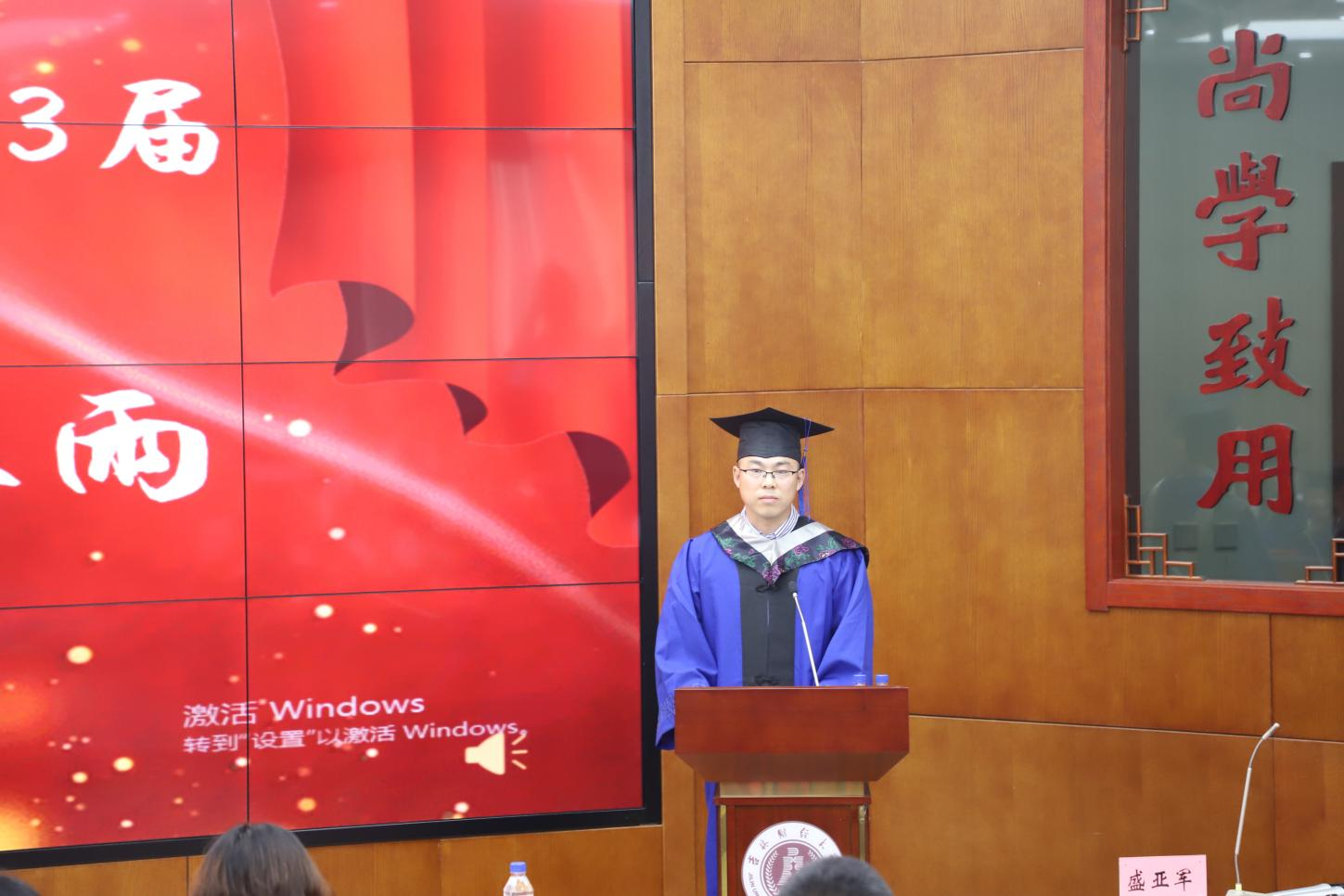 毕业生代表苗春雨在毕业感言中,回忆了在校逐梦求学的美好时光,表达了对学校培养的感激之情,表示新征程上深耕岗位,矢志不渝,再报母校恩情的坚定决心。