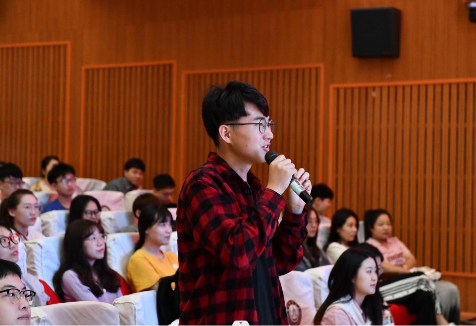 围绕研究生的学习与生活,结合实际,童猛着重讲了三个方面。首先,研究生要明白一个基本道理,研究生教育与本科教育有着显著的不同,研究生教育是一种成才教育,旨在学习与创造新的知识。其次,研究生在校期间必须要高度重视并完成好一件大事,即写好一篇论文或案例报告,要重点向“五个老师”(志趣、问题、文献、实践以及导师)学习请教。再次,研究生的学问人生应当把握三个关键:一是“老实”,即做老实人、说老实话、办老实事;二是“刻苦”,即思想刻苦、学习刻苦、生活刻苦;三是“乐观”,要悦己悦人。童猛特别强调了学术诚信的重要性,对广大同学给予警醒和勉励。