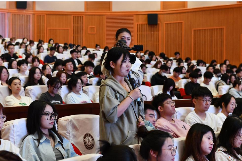 童猛以《春华秋实》为主题,与2023级研究生进行了交流。他首先对2023级研究生表示热烈的欢迎。为了做好此次入学教育,童校长此前专门召开了研究生毕业生座谈会,根据座谈会上毕业生对学校研究生教育的意见和建议,以及自己平时所掌握的情况,他从考研动机、问题挑战、人生规划等方面与新生进行了现场互动交流。