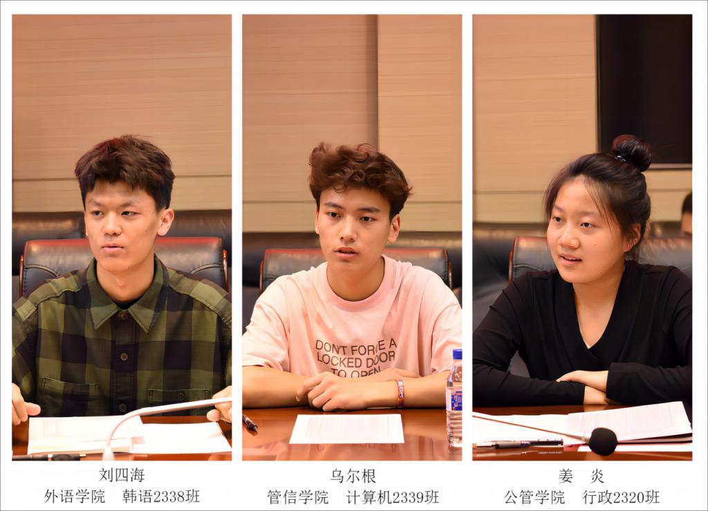 会上,孙杰光和刘鹤首先向全体新生代表表示热烈的欢迎,鼓励同学们结合自身经历、报考专业、饮食起居、人生规划等方面畅所欲言,交流分享。来自五湖四海的学生代表分享了开学途中的所见所感、初入校园的忐忑不安、辅导员老师的关怀备至、学长学姐的热情帮助。同学们也就学好专业课打好基础、积极向党组织靠拢、加入学生社团参与活动、考取相关从业证书等方面表达了对大学生活的憧憬与期待,几名研究生新生代表也分享了再次踏入校园的感受以及读研期间的规划和目标。