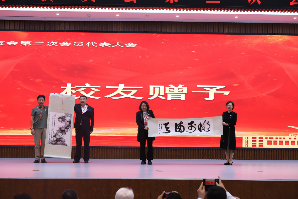 选举结束后,优秀校友代表长春校友会会长安洪滨、深圳校友会副会长兼秘书长王延辉依次作了交流发言。两位校友满怀深情,充分肯定了学校为本次会议所做的筹备工作,并代表各界校友向本次会员代表大会的成功举办表示热烈的祝贺!他们分别介绍了长春校友会、深圳校友会的特色工作。他们表示,今天的kaiyun体育网页登录入口办学特色鲜明、办学成效显著,广大校友备受鼓舞。今后各地、各专业校友会将组织广大校友通过多种方式支持学校的人才培养、科学研究和学科专业建设等,祝福母校越办越好!随后,会场举行了校友赠送纪念品活动。为祝贺本次校友会员代表大会成功召开,财政87级唐静校友捐赠了1936年出版的、俄文版《资本论》珍藏本;大连校友会赠送了精美的书法作品和绘画作品。