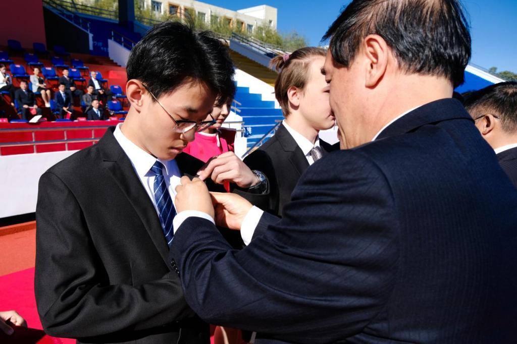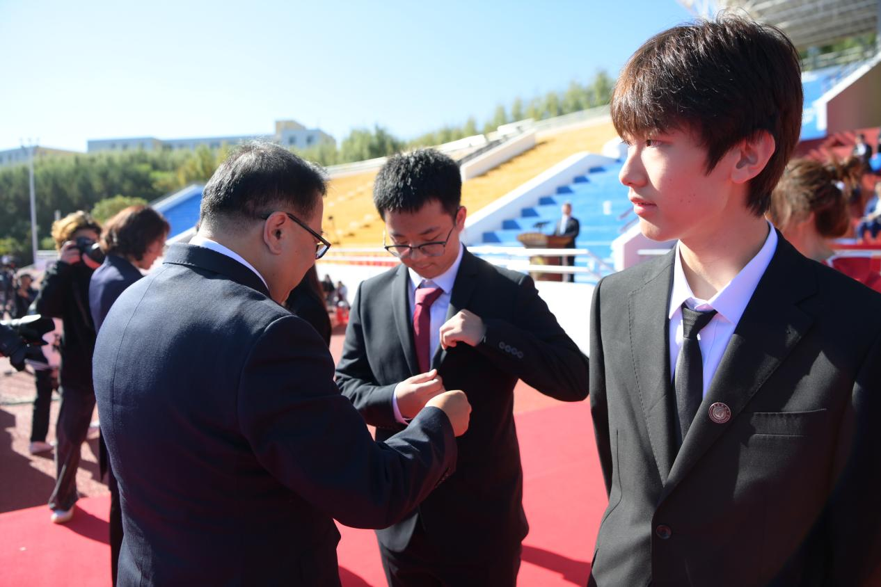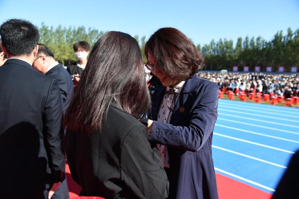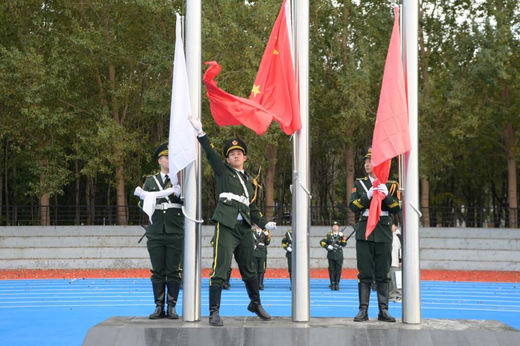 开学典礼在热情洋溢的青春歌舞中拉开序幕。晨光微曦,五星红旗在雄壮的国歌声中冉冉升起;秋风习习,校旗在校歌声中肆意飘扬。升旗仪式后,与会领导为2023级新生代表佩戴了校徽。