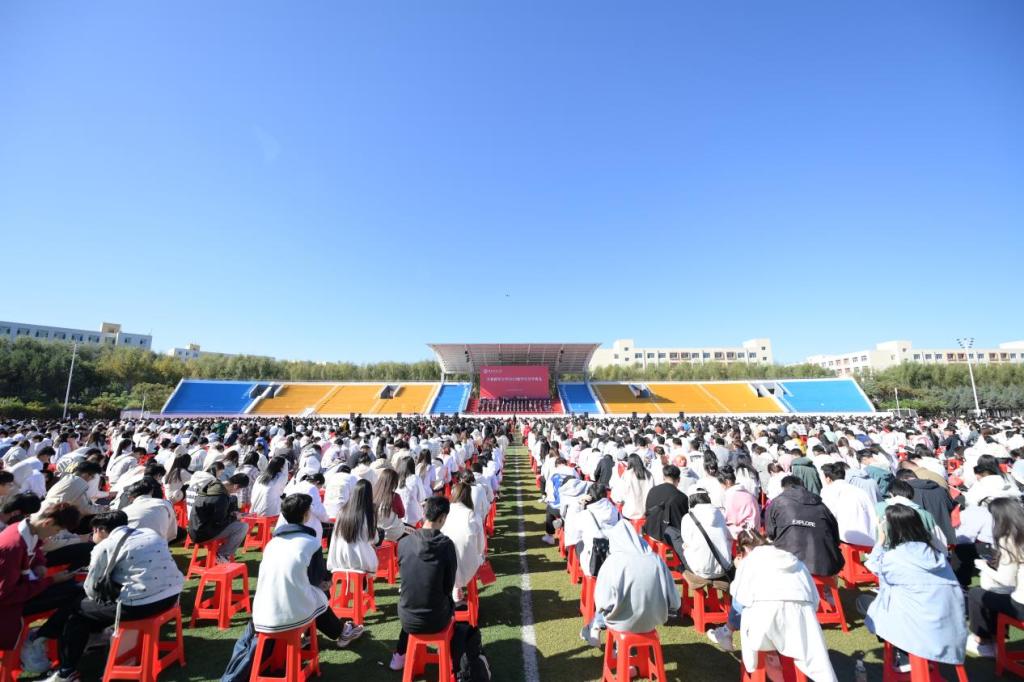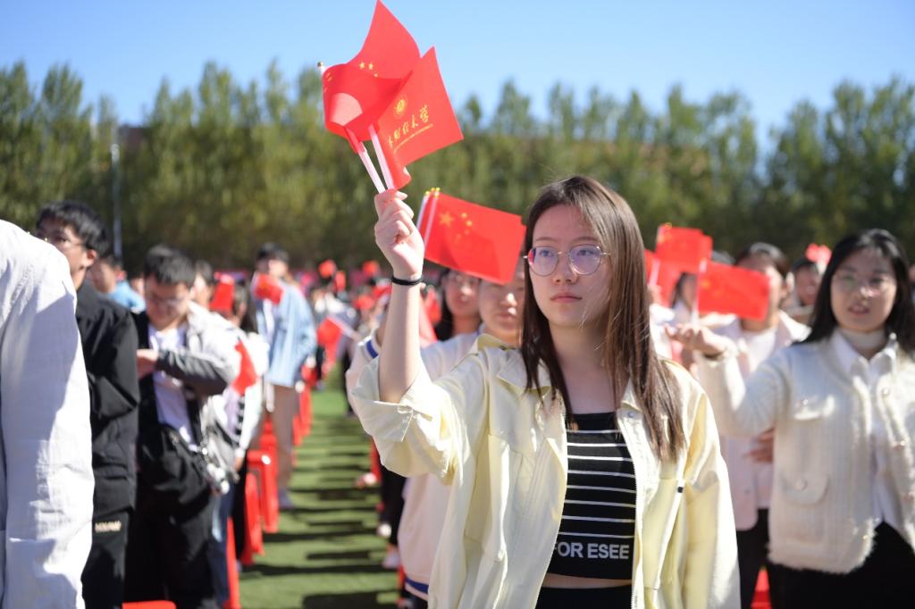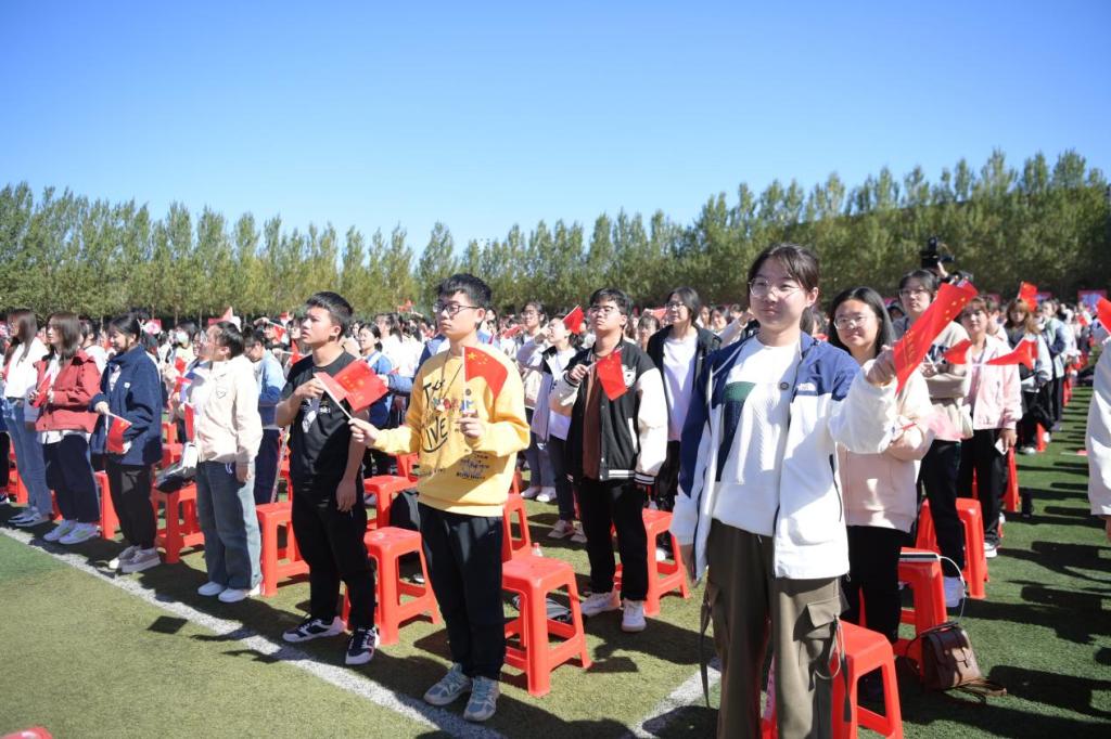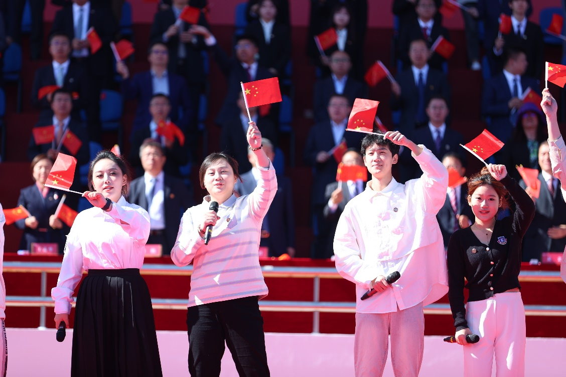 开学典礼在全体师生齐唱《青春吉财》《歌唱祖国》中圆满结束。(审核人 李栋栋)