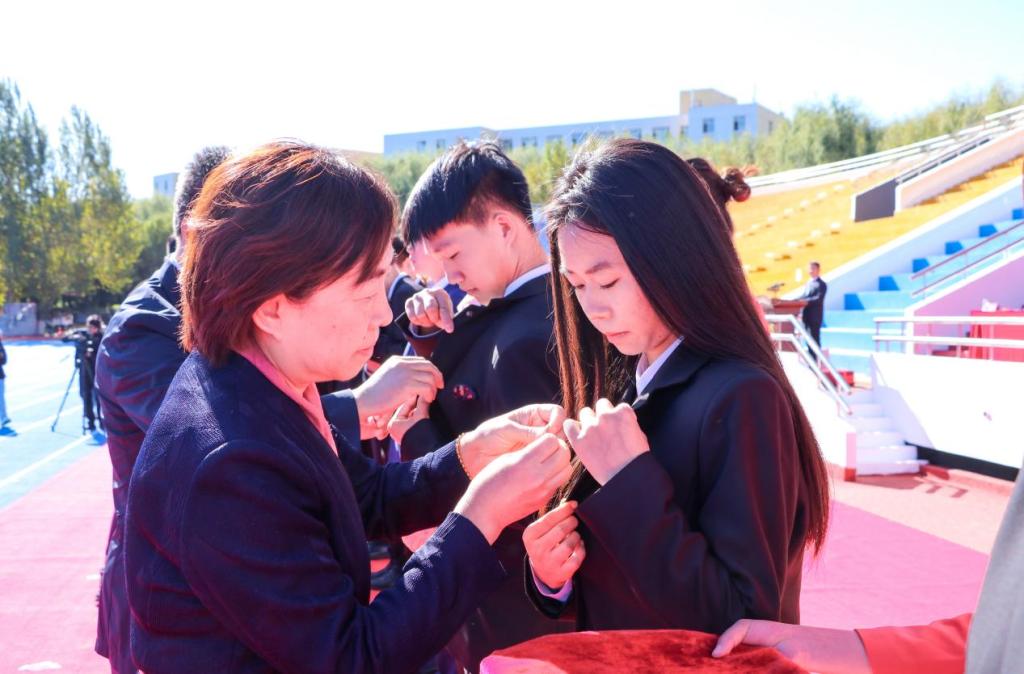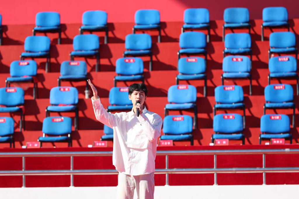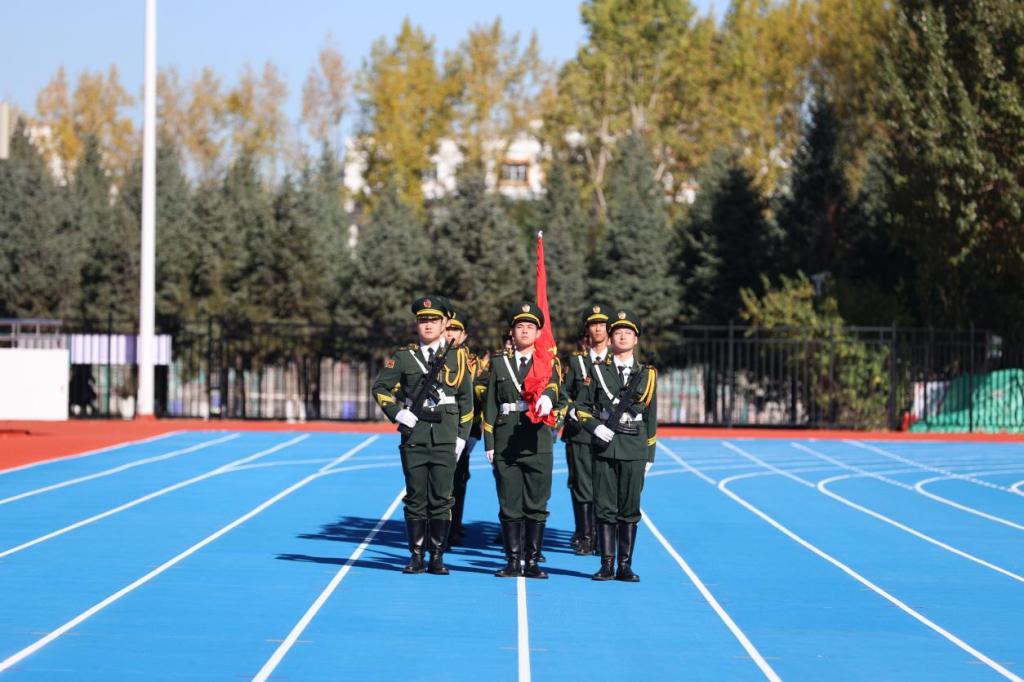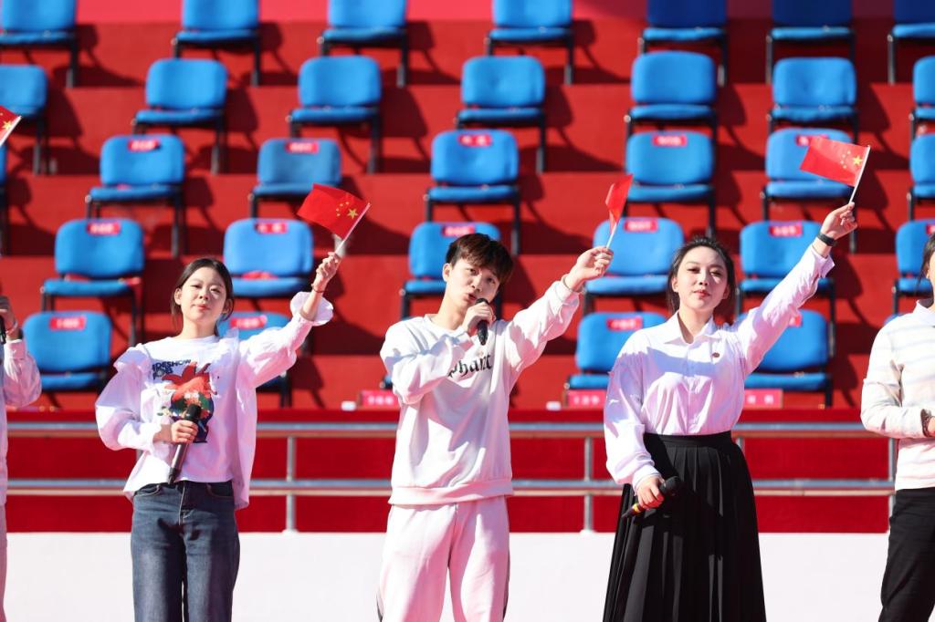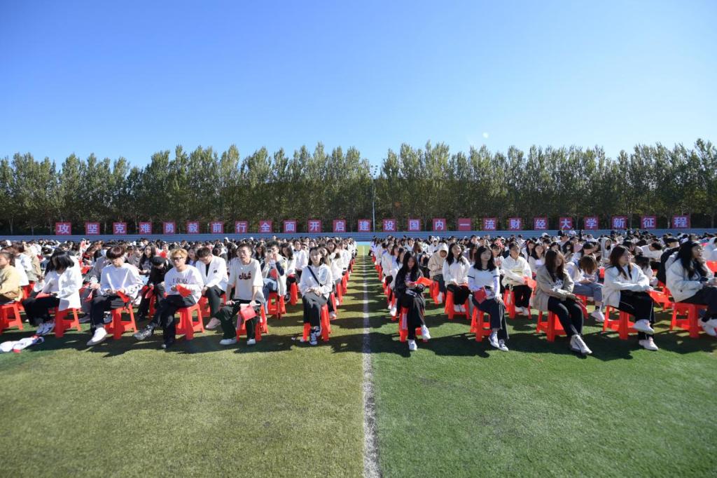 开学典礼在全体师生齐唱《青春吉财》《歌唱祖国》中圆满结束。(审核人 李栋栋)