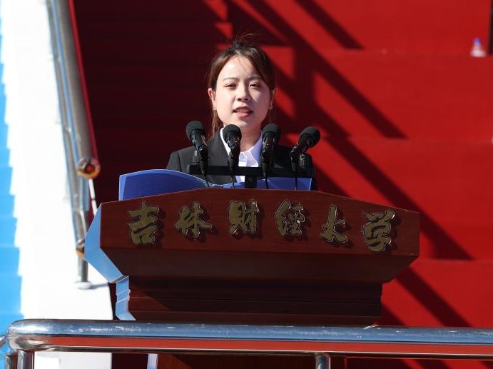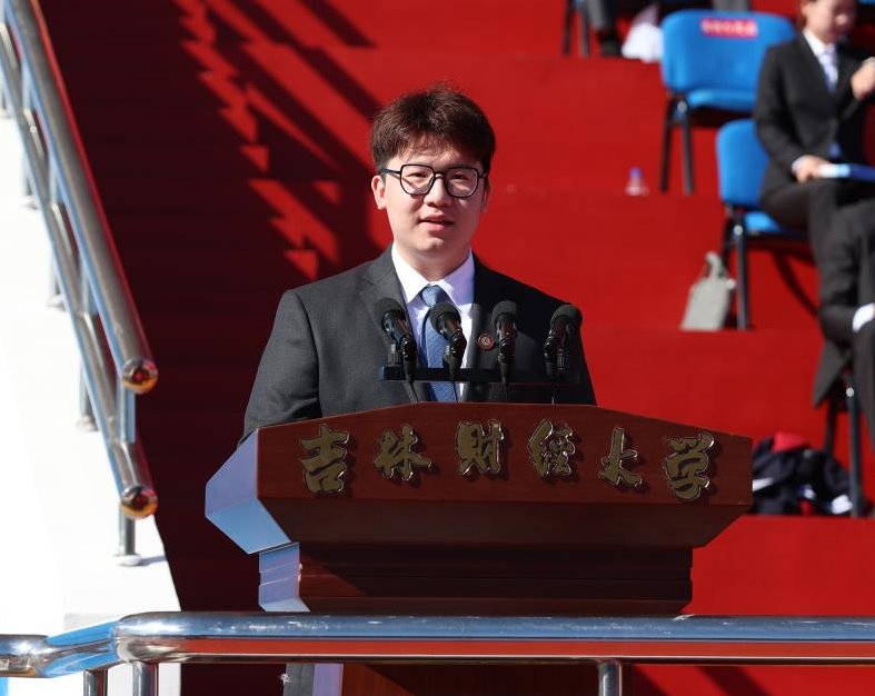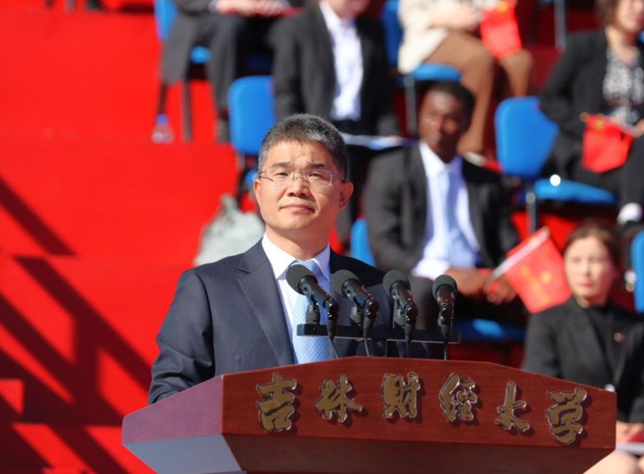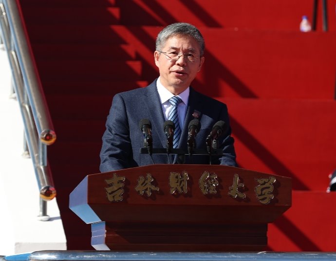 校党委副书记、校长童猛在致辞中指出,大学之大,在有大楼,更在有大师、有大爱;大学之大,在精神之大。根植白山松水、黑土大地的吉财,积淀涵养了为党为国的坚守、五湖四海的涵容、求真问道的执着、抱朴守拙的实诚、择善鼎新的进取精神。他向2023级新生提出三点希望:一是要学会上大学,要“立志”。要真正认识上大学的意义所在,要为自己的大学生活定一个真正的目标。二是要学会学习,要“立能”。要知道什么是真正的学习,从而知道真正的学会其实质是会学、会做再到会教。三是要学会做人,要“立德”, 要做真正的自己,陶冶情操、砥砺品行,塑造自己的世界观、人生观、价值观,健全自己的人格。童猛强调,新时代的吉财,牢记为党育人、为国育才的初心使命,作出育人立校的战略部署,正在大力推进实施本科人才培养改革和研究生质量提升计划,完全有信心有决心让同学们过一流的大学生活。新时代的中国,正昂然走在以中国式现代化推进实现中华民族伟大复兴的新征程上,建设社会主义现代化强国,有你、有我、有我们大家。