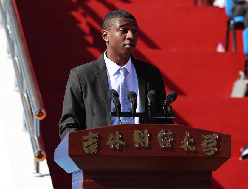 来自非洲马里的企业管理硕士阿玛度·迪亚拉代表留学生发言,他对再次来到吉财学习感到非常的兴奋与荣幸,表示将认真学习专业课程,积极参与学校的各项活动,严守学校的规章制度,并满怀期待更好地熟悉中国文化和融入吉财生活。