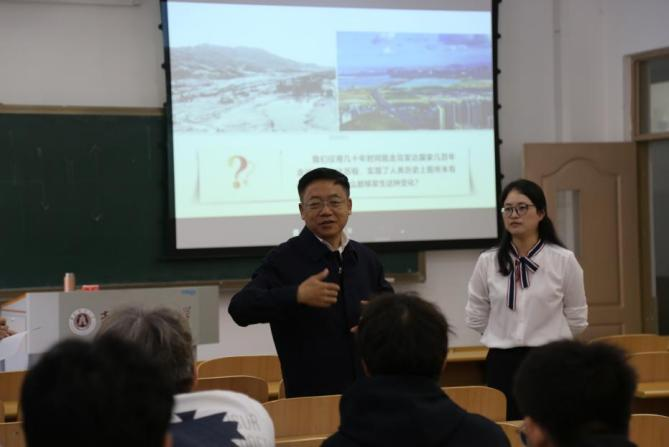 9月27日,孙杰光走进马克思主义学院青年教师夏艳艳的《习近平新时代中国特色社会主义思想概论》课堂,并接续夏艳艳老师讲授的“以中国式现代化全面推进中华民族伟大复兴”内容,为同学们上了一节别具特色的“书记双师思政课”。首先,他在倾听了多名同学畅谈了人生理想和职业规划之后,结合授课内容与同学们探讨了职业理想与个人梦想、中国梦与个人梦的关系,与同学们一同回顾了在中国共产党领导下中国人民寻梦、追梦、圆梦的伟大历史进程,将中华民族的昨天、今天和明天,熔铸于百余年中国波澜壮阔、沧桑巨变的历史图景,镌刻于几代人为民族复兴奋斗的艰辛历程,发人深省、催人奋进。随后,他结合省情,针对学生所学的旅游专业,与同学们分享了近几年吉林省落实习近平生态文明思想和“两山”理念,大力发展寒地冰雪经济取得的积极成效和未来的光明前景,向同学介绍了学校创建发展的历史以及“五馆”建设运行的情况,并号召同学们为建设新吉林、新吉财而贡献青春力量。接下来,他重点强调了学好《习近平新时代中国特色社会主义思想概论》课程的重要性,希望同学们除了要认真听好每一节课之外,还要积极参加学校成立的习近平经济思想、习近平法治思想、习近平外交思想、习近平强军思想、习近平生态文明思想五个大学生理论学习小组,把握精神实质、核心要义和贯穿其中的立场观点方法,坚定理想信念,提升综合素质。最后,孙杰光勉励同学们作为新时代新征程中国梦的筑梦人,每个人都共同享有人生出彩和梦想成真的机会,共同享有同祖国和时代一起成长与进步的机会;每个人都把人生理想融入国家和民族的伟大梦想之中,敢于有梦、勇于追梦、勤于圆梦,就会汇聚成实现中华民族伟大复兴中国梦的强大力量。