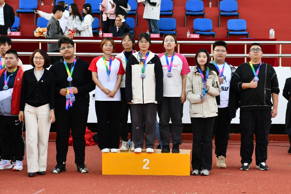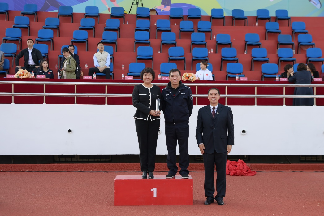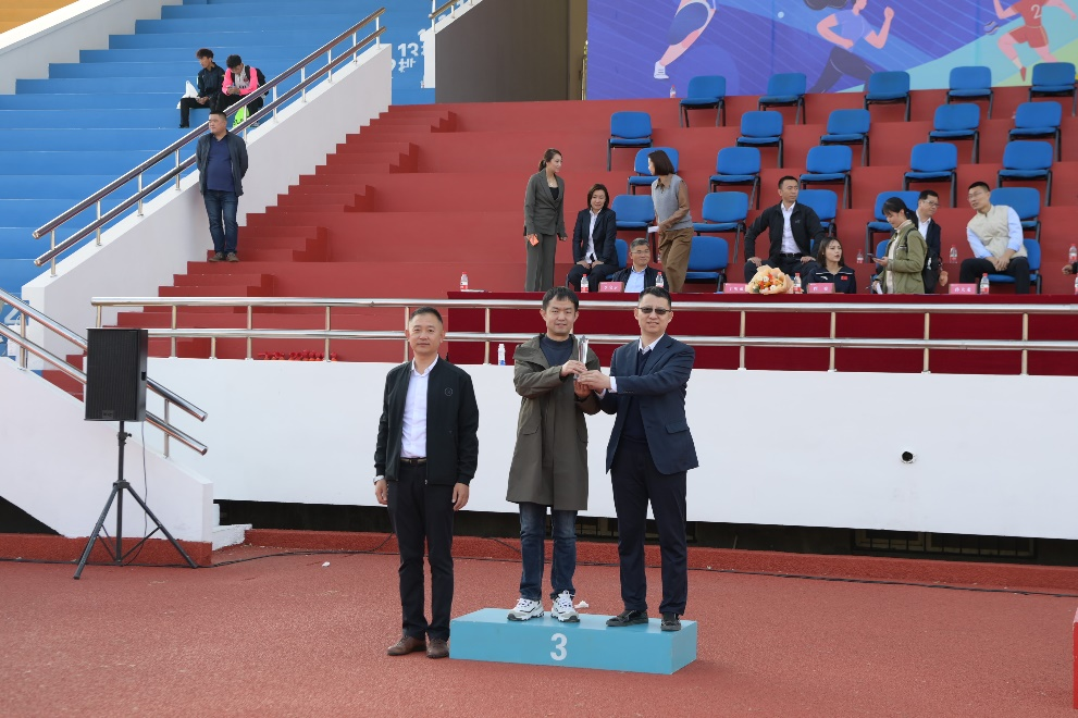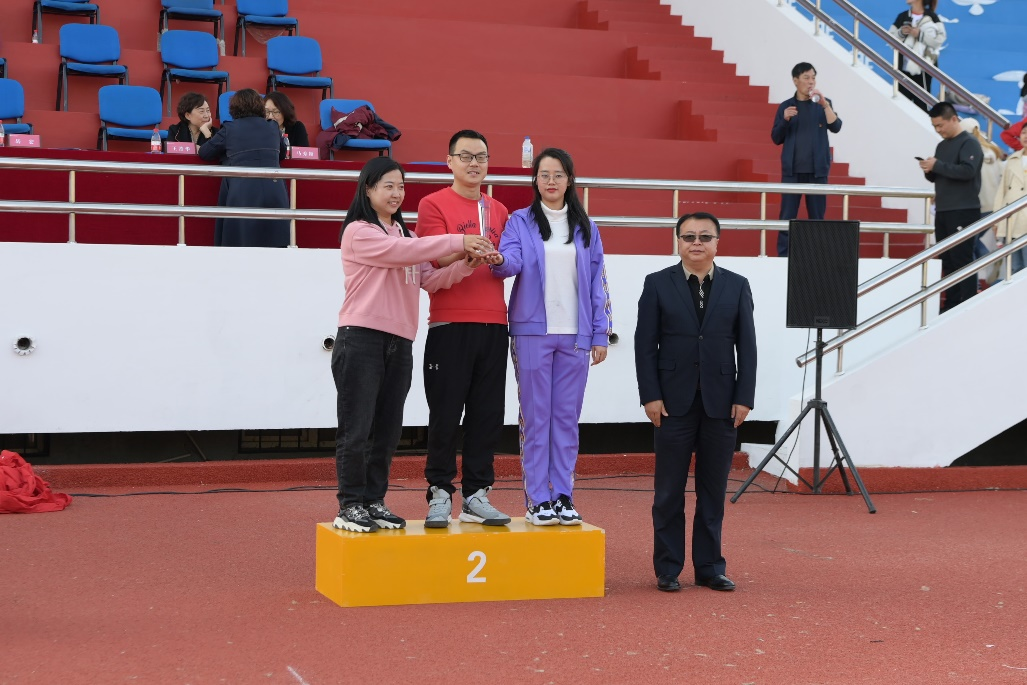 体育教研部老师方庆波、金融学院赵恩泽分别代表裁判员和运动员进行了宣誓;孙大龙、岳宏、丁庆东、王菁华、李宝永、马秀颖等分别为获奖教工和学生颁发了奖杯及奖牌。